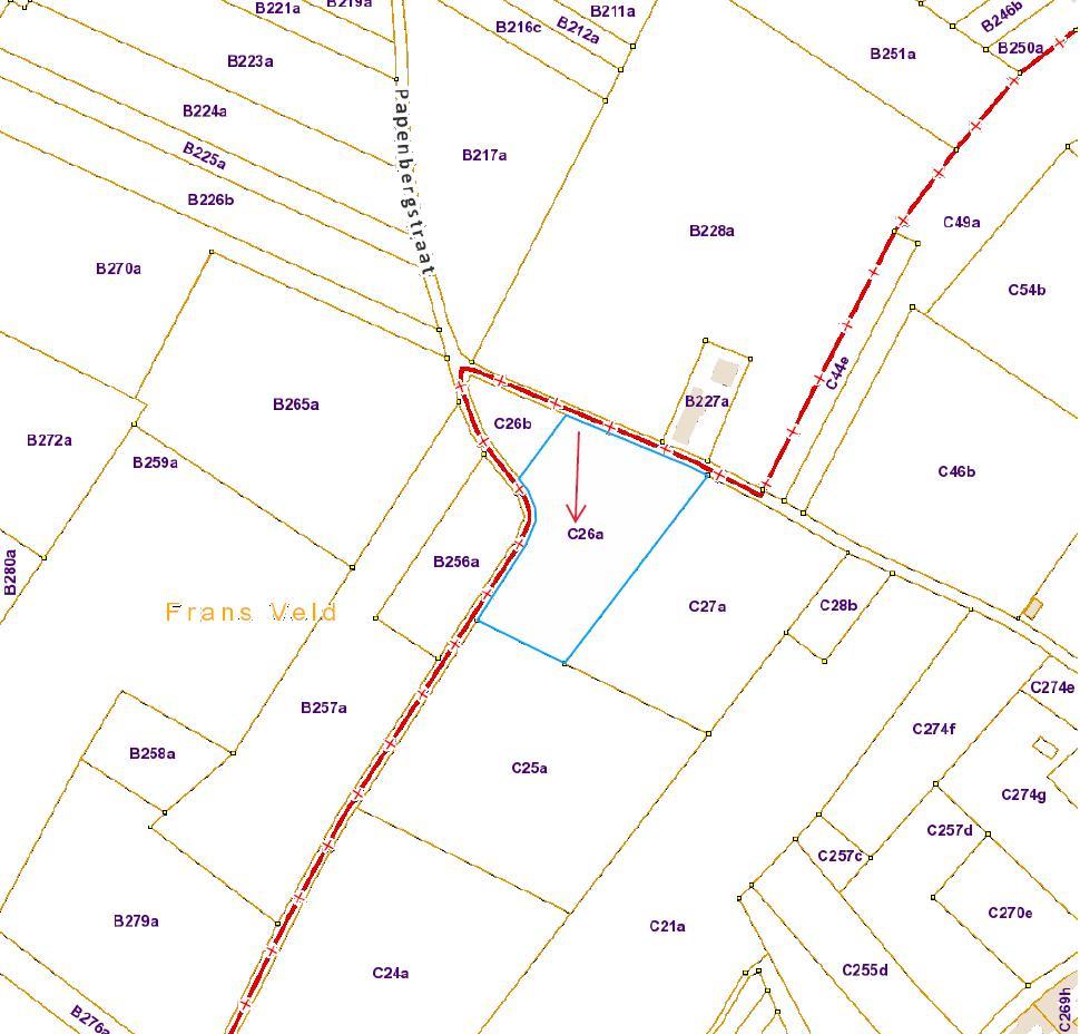 Het perceel gelegen te Hoeselt (St-Huibrechts-Hern) aan de Papenbergstraat, ter plaatse genaamd 'De Papen Berg' (sectie C nummer 26A), is verpacht. De verkoop geschiedt ONDER DE OPSCHORTENDE VOORWAARDE VAN NIET-UITOEFENING VAN HET RECHT VAN VOORKOOP DOOR DE PACHTER.