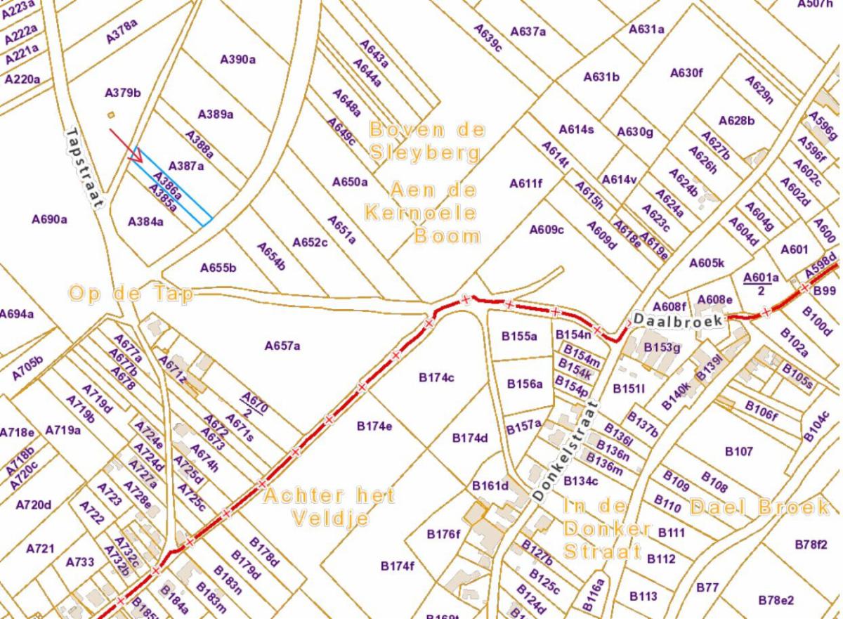 Het perceel gelegen te Tongeren (Lauw) aan de Tapstraat, ter plaatse genaamd 'Onder de Sleyberg' (sectie A nummer 386A), is verpacht. De verkoop geschiedt ONDER DE OPSCHORTENDE VOORWAARDE VAN NIET-UITOEFENING VAN HET RECHT VAN VOORKOOP DOOR DE PACHTER.
