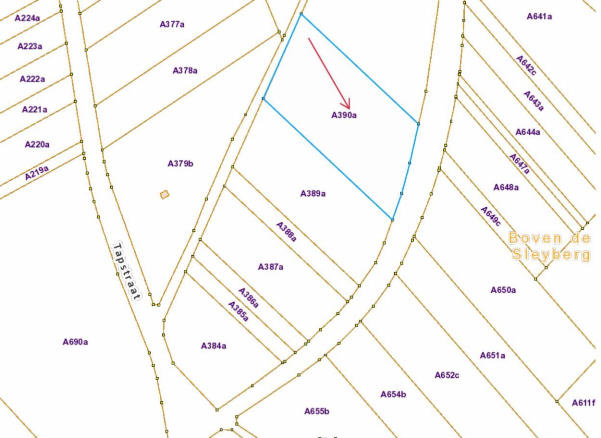 Het perceel gelegen te Tongeren (Lauw) aan de Tapstraat, ter plaatse genaamd 'Onder de Sleyberg' (sectie A nummer 390A), is verpacht. De verkoop geschiedt ONDER DE OPSCHORTENDE VOORWAARDE VAN NIET-UITOEFENING VAN HET RECHT VAN VOORKOOP DOOR DE PACHTER. VERKOOP DOOR INSCHRIJVING ONDER GESLOTEN OMSLAG
