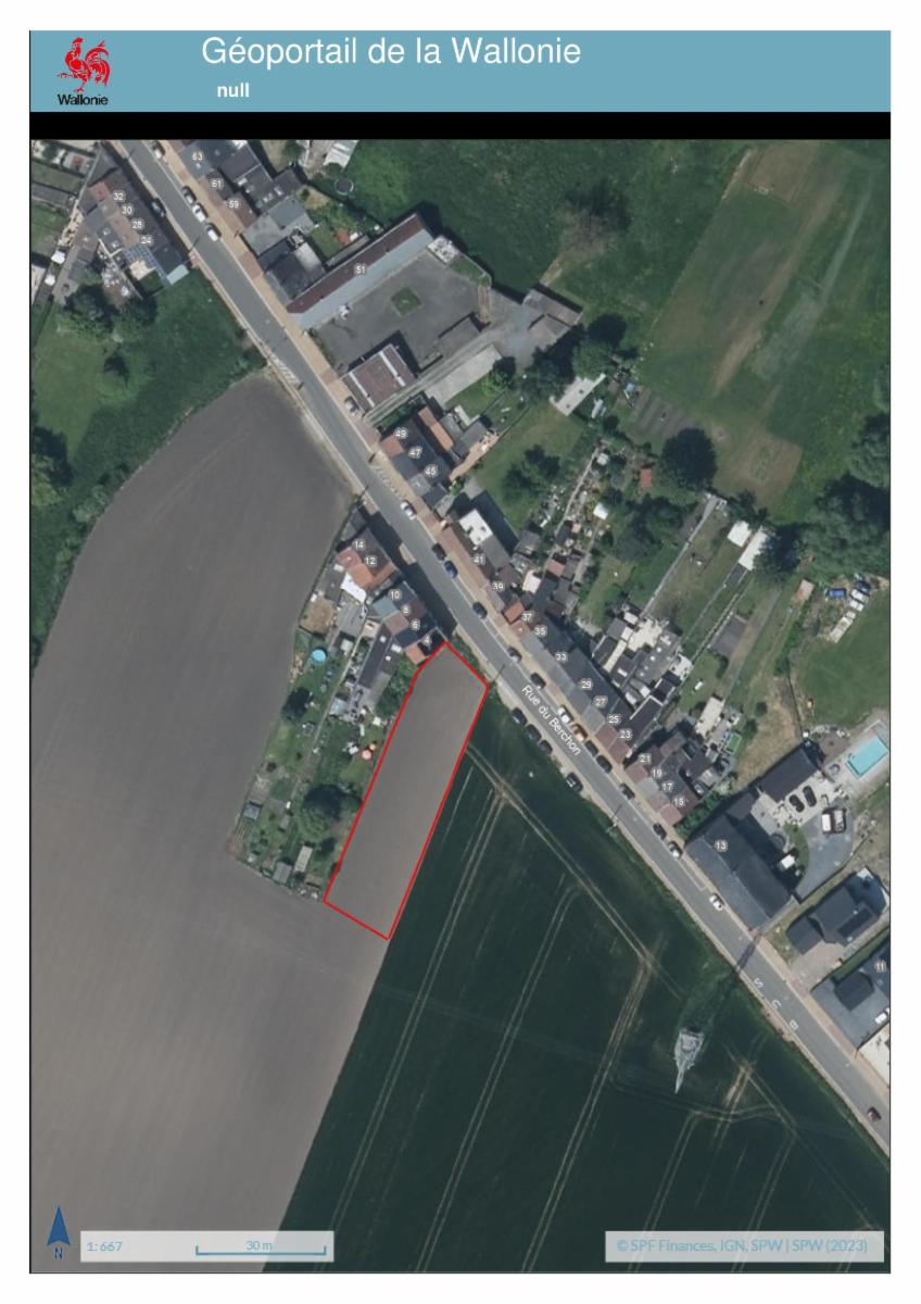 Parcelle de terrain plat en front de voirie (rue du Berchon) présentant une façade d'environ 14,30 m et d'une superficie mesurée de 1.346 m².