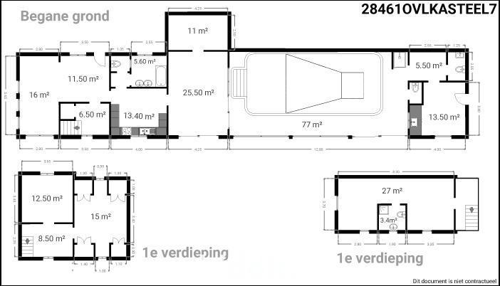 Composition : 1 garage, 3 chambres, 2 salles de bains.