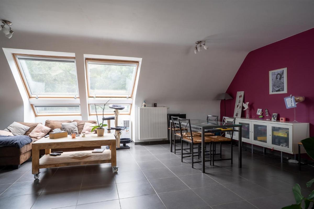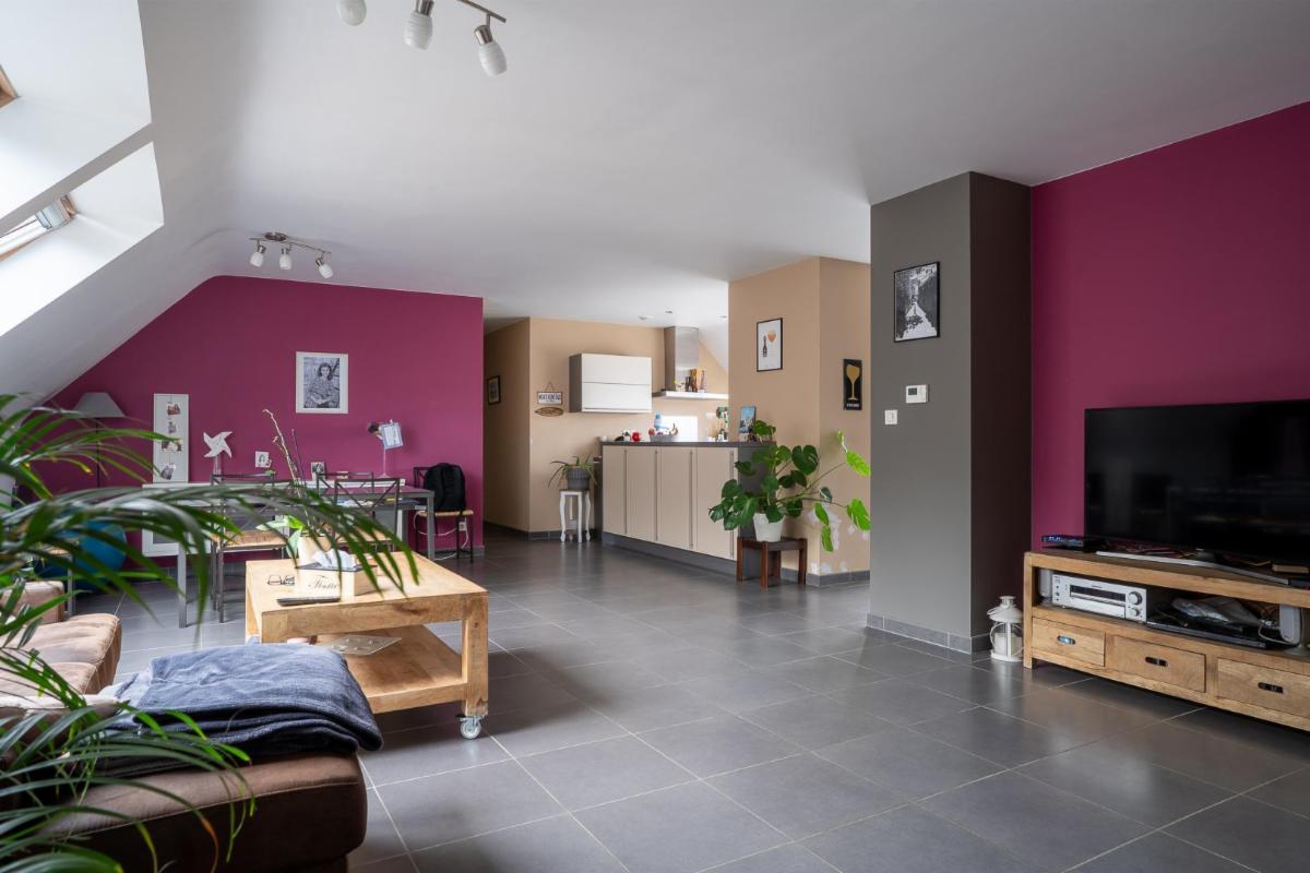 Penthouse de +/- 125m² au troisième et dernier étage d’une copropriété sise à Baudour, Avenue Louis Goblet 82 composé d’un grand salon/salle à manger, cuisine équipée, 3 chambres, WC séparé, salle de bain avec baignoire et douche, buanderie.
