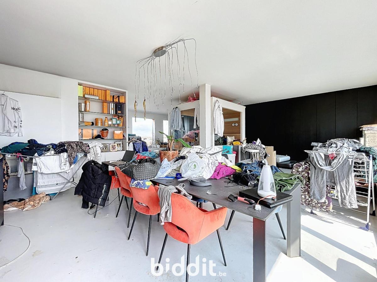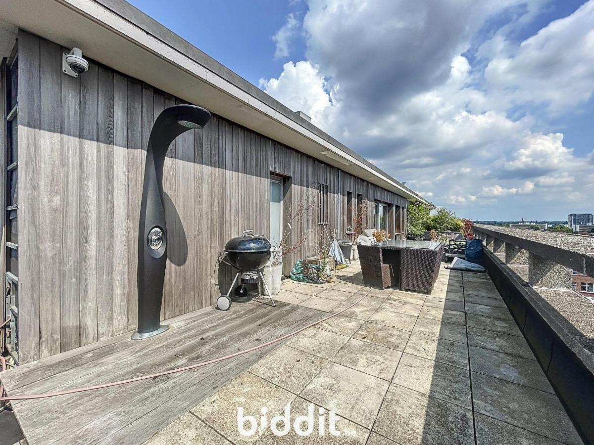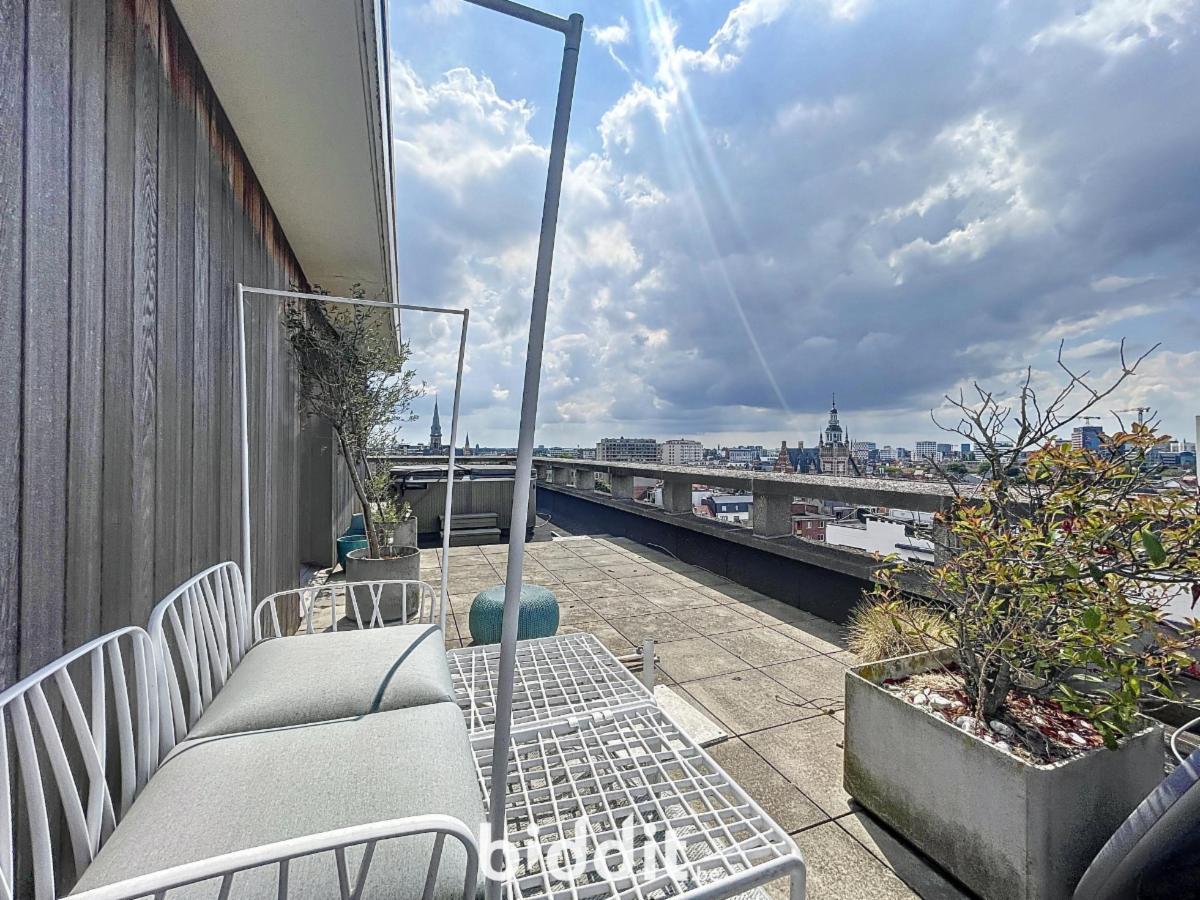 Penthouse au cœur d'Anvers. Lumineux. Espace ouvert avec salon, cuisine, une chambre, salle de bains et sauna, toit plat environnant pouvant servir de terrasse ensoleillée, cave et place de parking. À proximité des transports en commun et des commerces. G score: A P score: A
