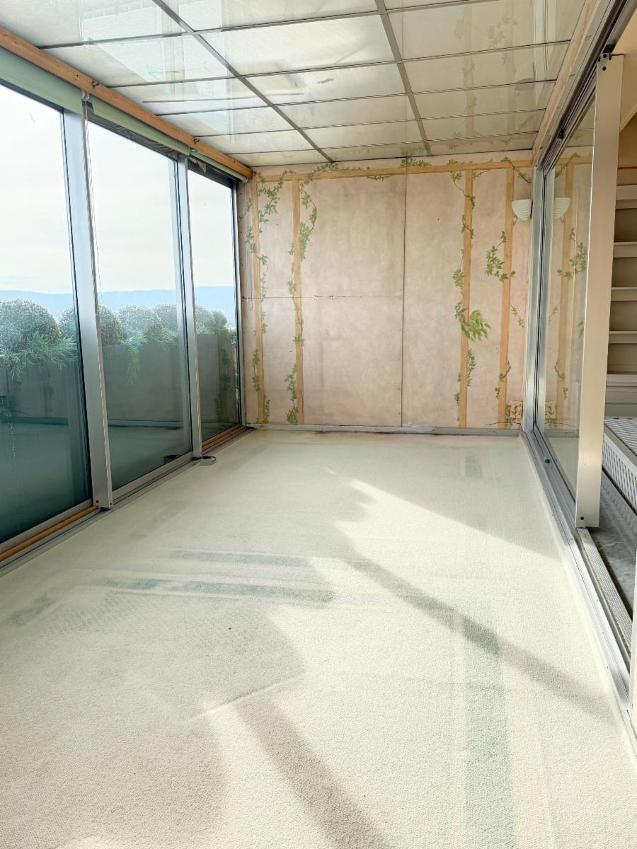 Terrasse couverte par une véranda chauffée.
