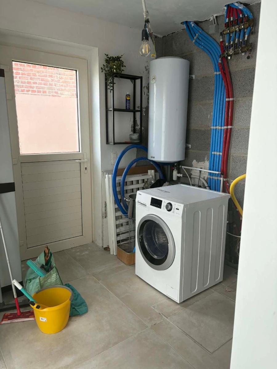 Belle Villa à parachever comprenant : hall, wc, living, cuisine équipée, buanderie, salle de bain avec baignoire et douche, 4 chambres ( possibilité de 2 petites chambres supplémentaires ), vide ventilé, grand jardin, passage latéral de chaque coté de l'immeuble, double vitrage PVC, citerne ( 10000L ), raccordements usuels, contrôles électrique ok. Radiateurs et chaudière à prévoir.