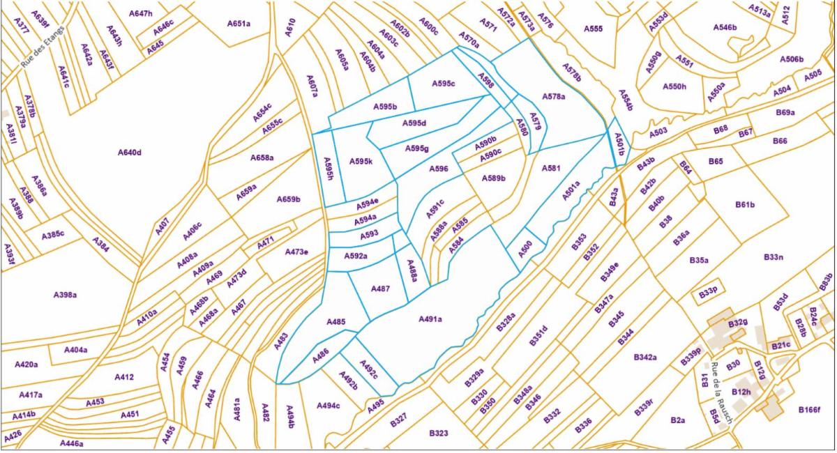 Peuplement : Hêtraie : 2,033 ha / Pessière : 0,81 ha.