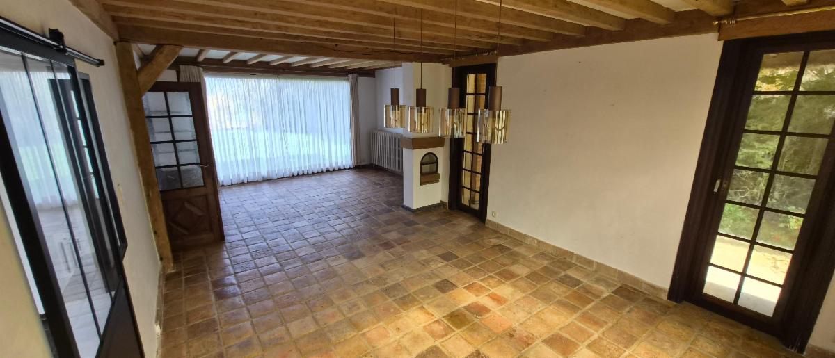 Rez: hall, vestiaire, escalier donnant à l'étage, wc, hall avec armoires encastrées, salon, salle à manger, cuisine équipée, salle de bain, véranda et 2 chambres.