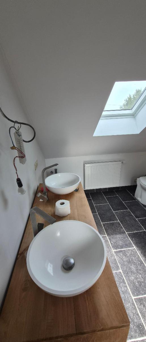 Etage: hall, 2 chambres, salle de bain avec wc.