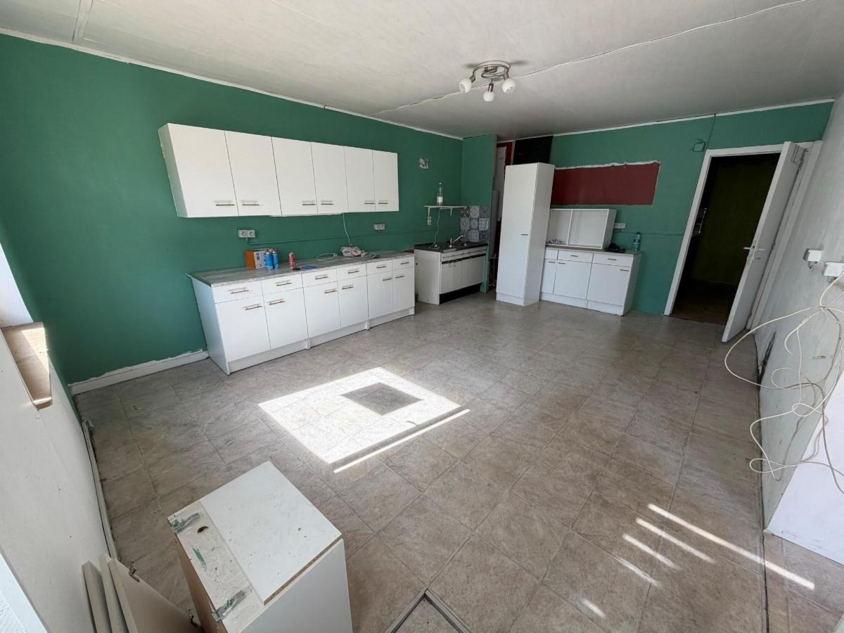 Rez: Living avec cheminées, grande cuisine, arrière cuisine, salle de douche avec wc, garage et dépendance,