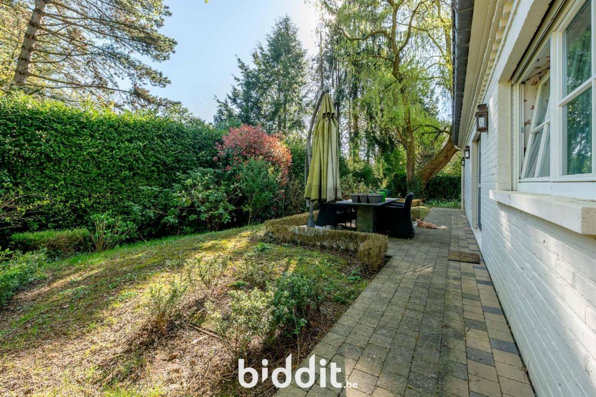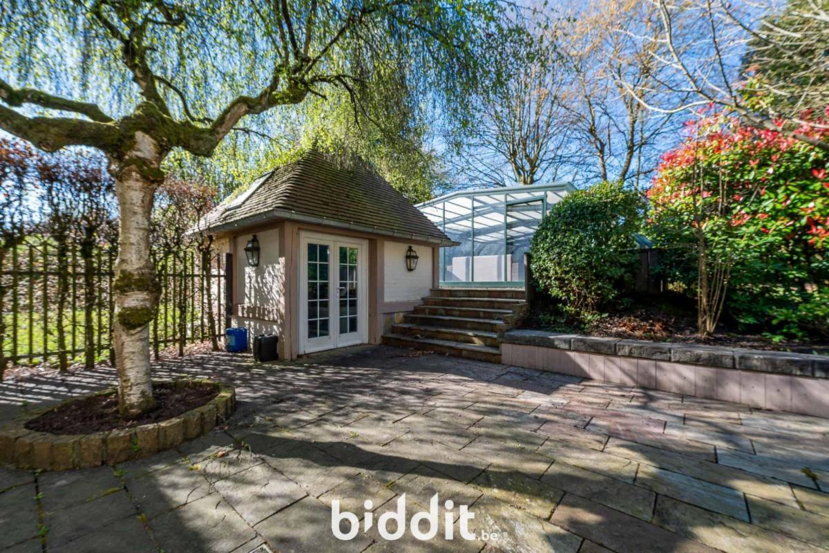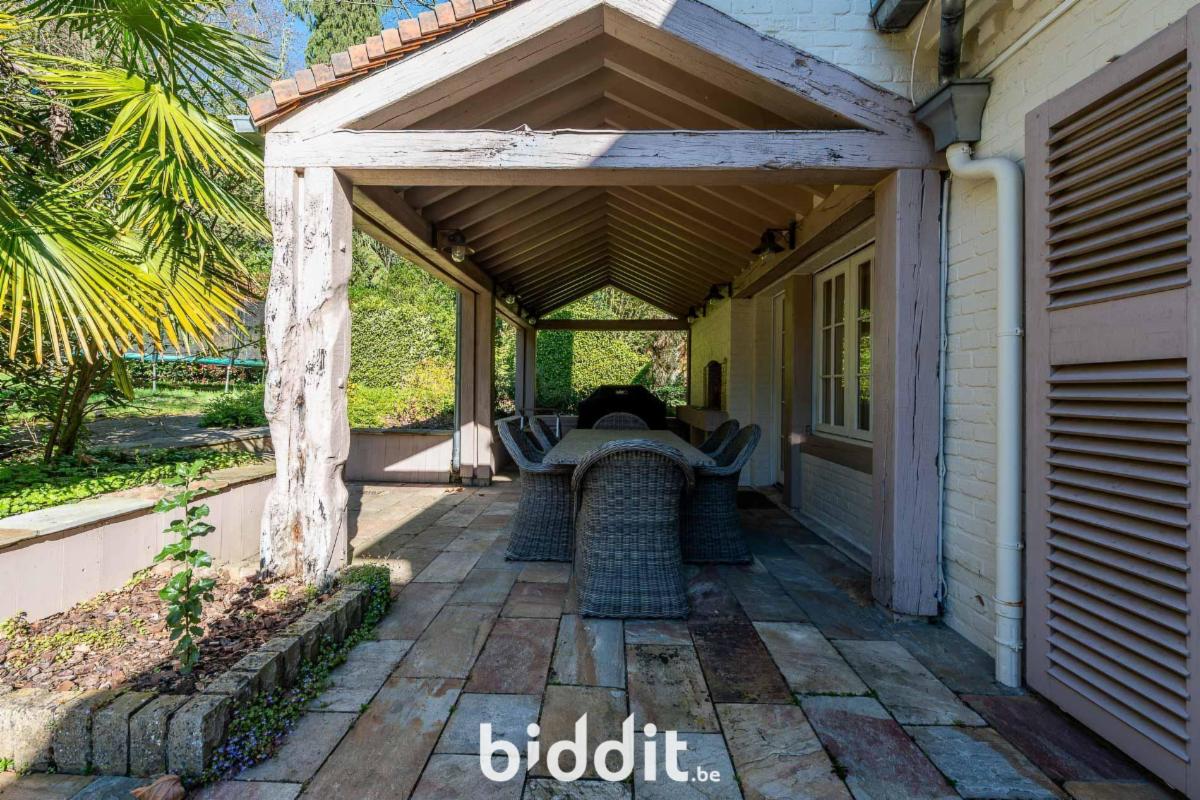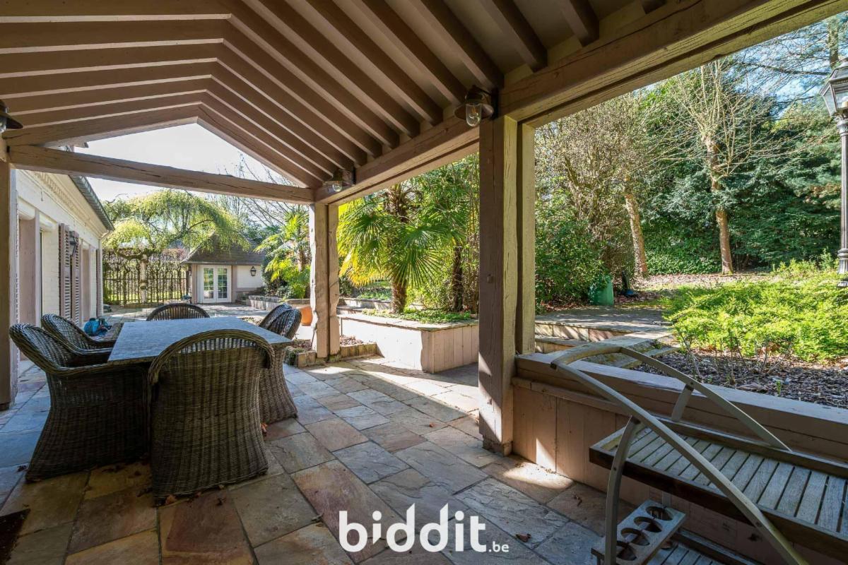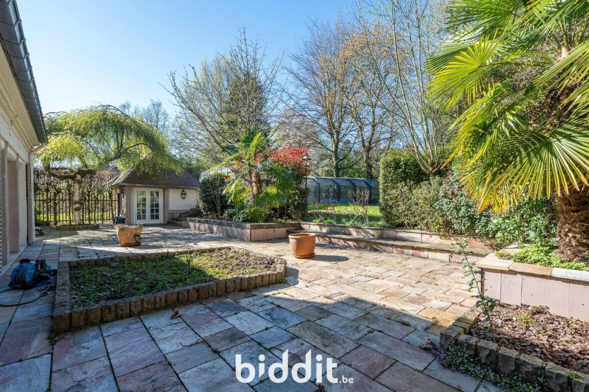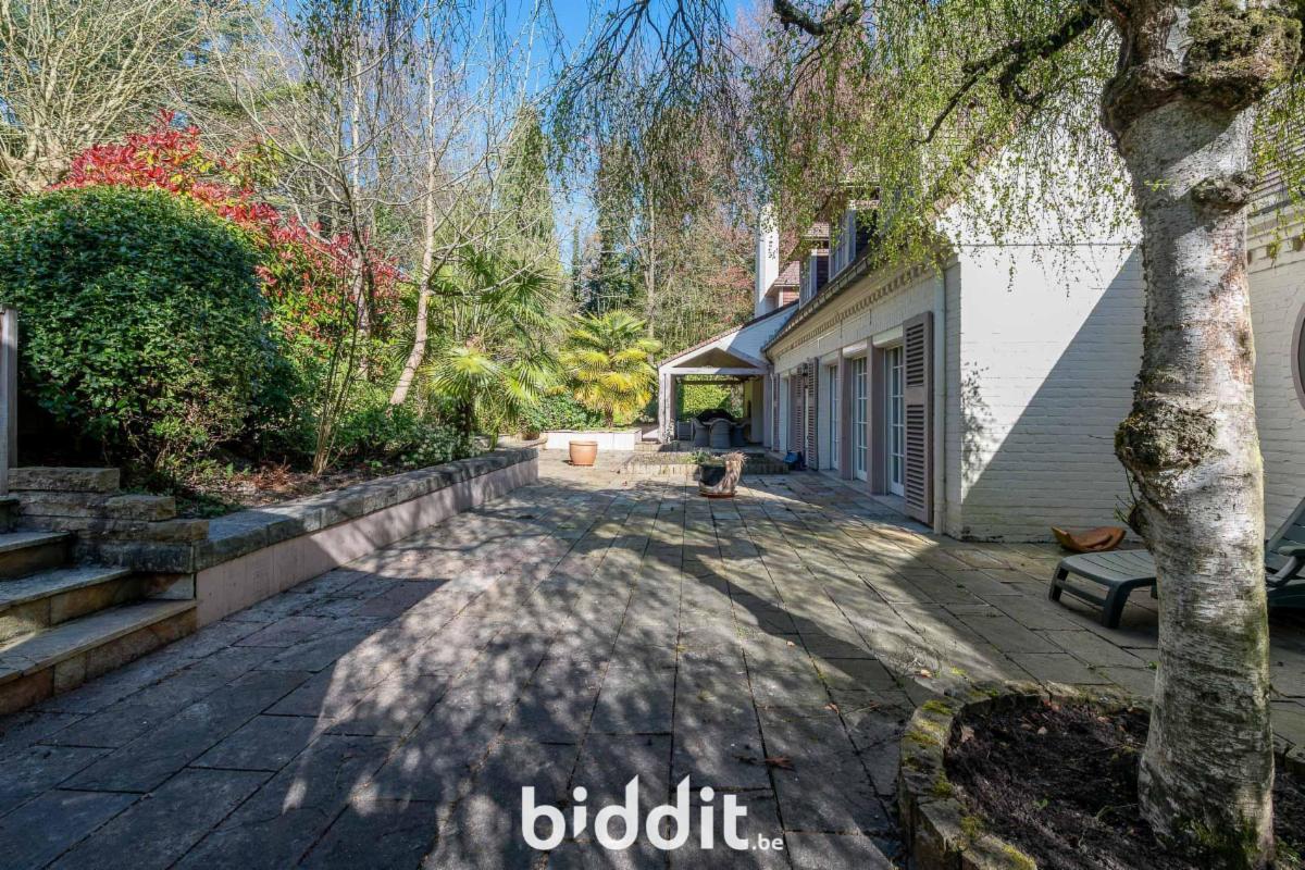 Située sur un terrain de 2 672 m², entièrement entourée de verdure, dans une impasse du quartier résidentiel de Bouchout.