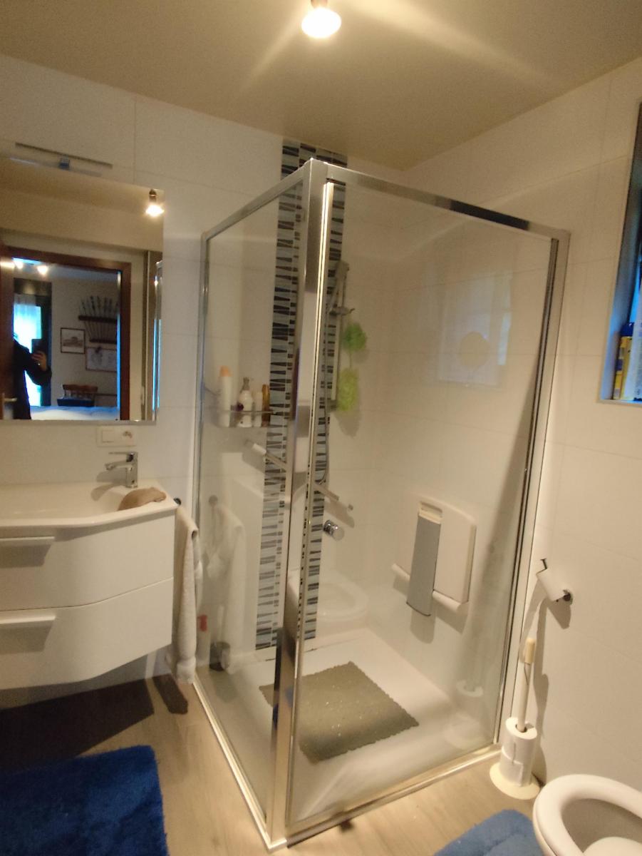 Le rez-de-jardin constitue le véritable cœur de la maison : un vaste espace de vie baigné de lumière, où la cuisine équipée s’ouvre naturellement sur le coin repas et un salon chaleureux agrémenté d’un poêle à bois, créant une atmosphère conviviale en toute saison. Ce niveau comprend également une buanderie, une chambre et une salle de douche avec WC.