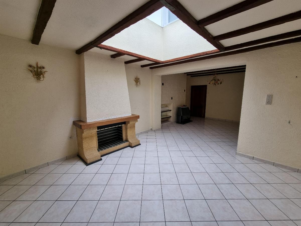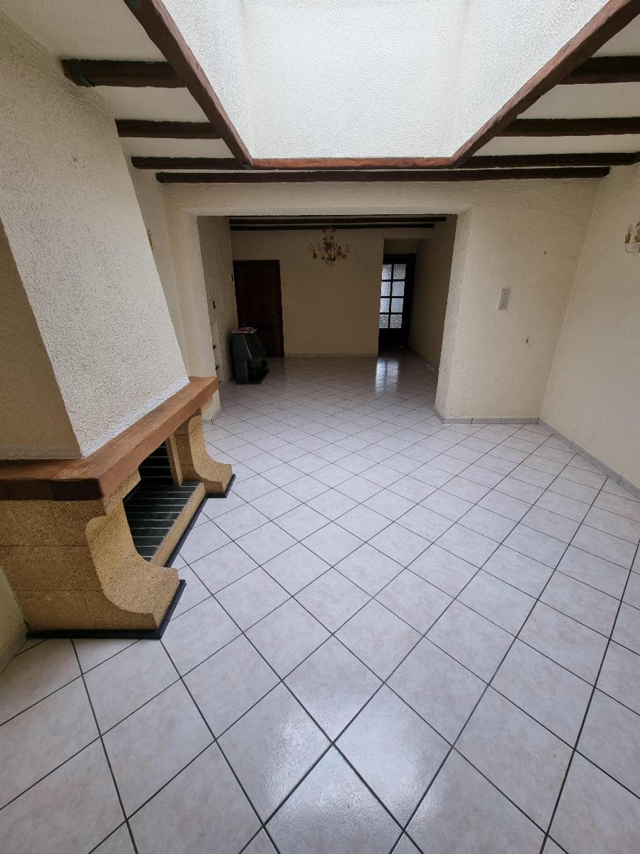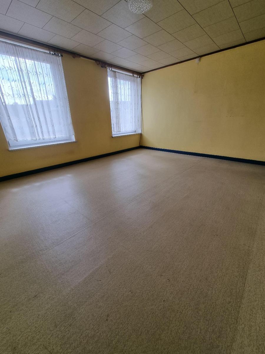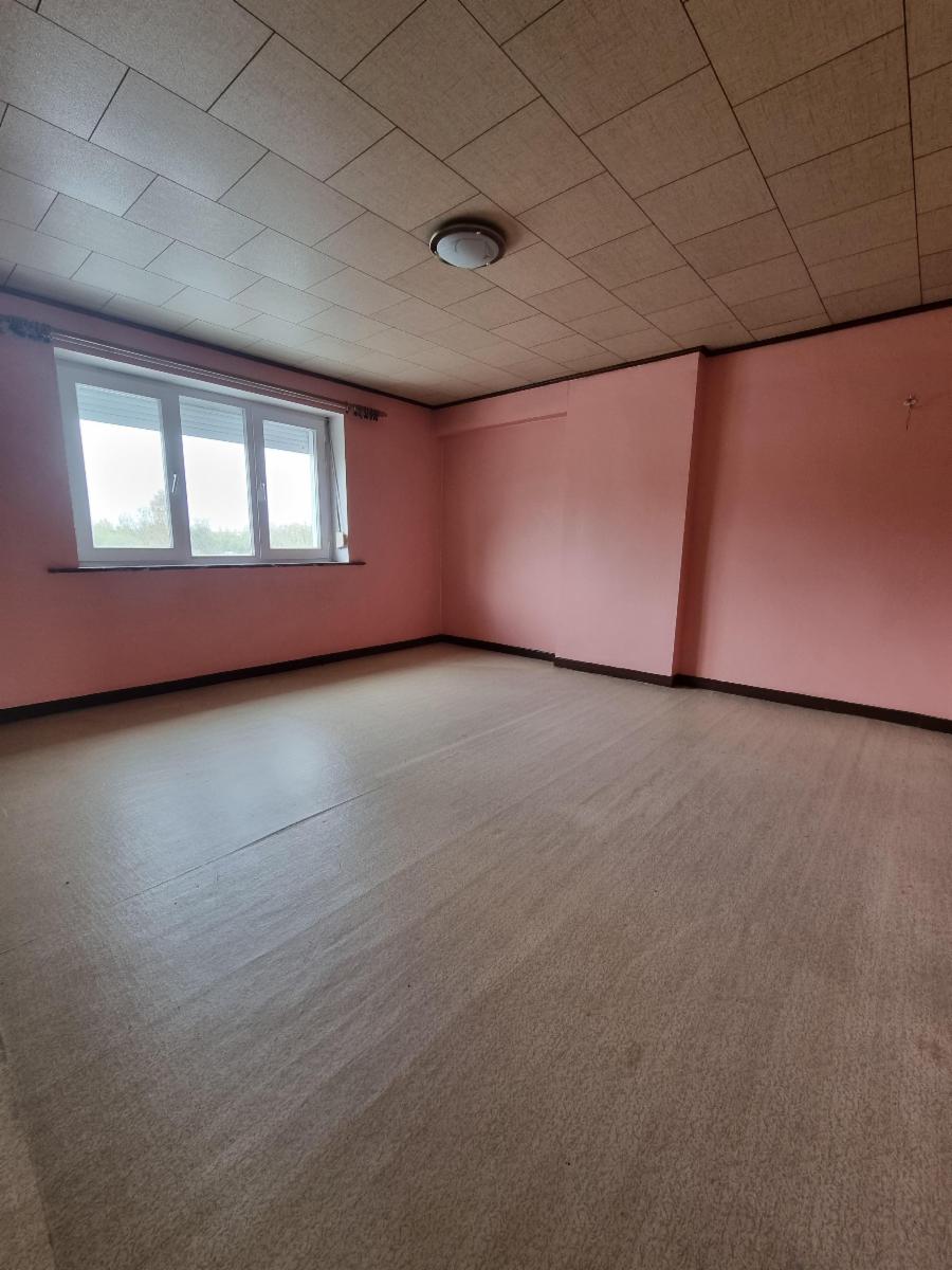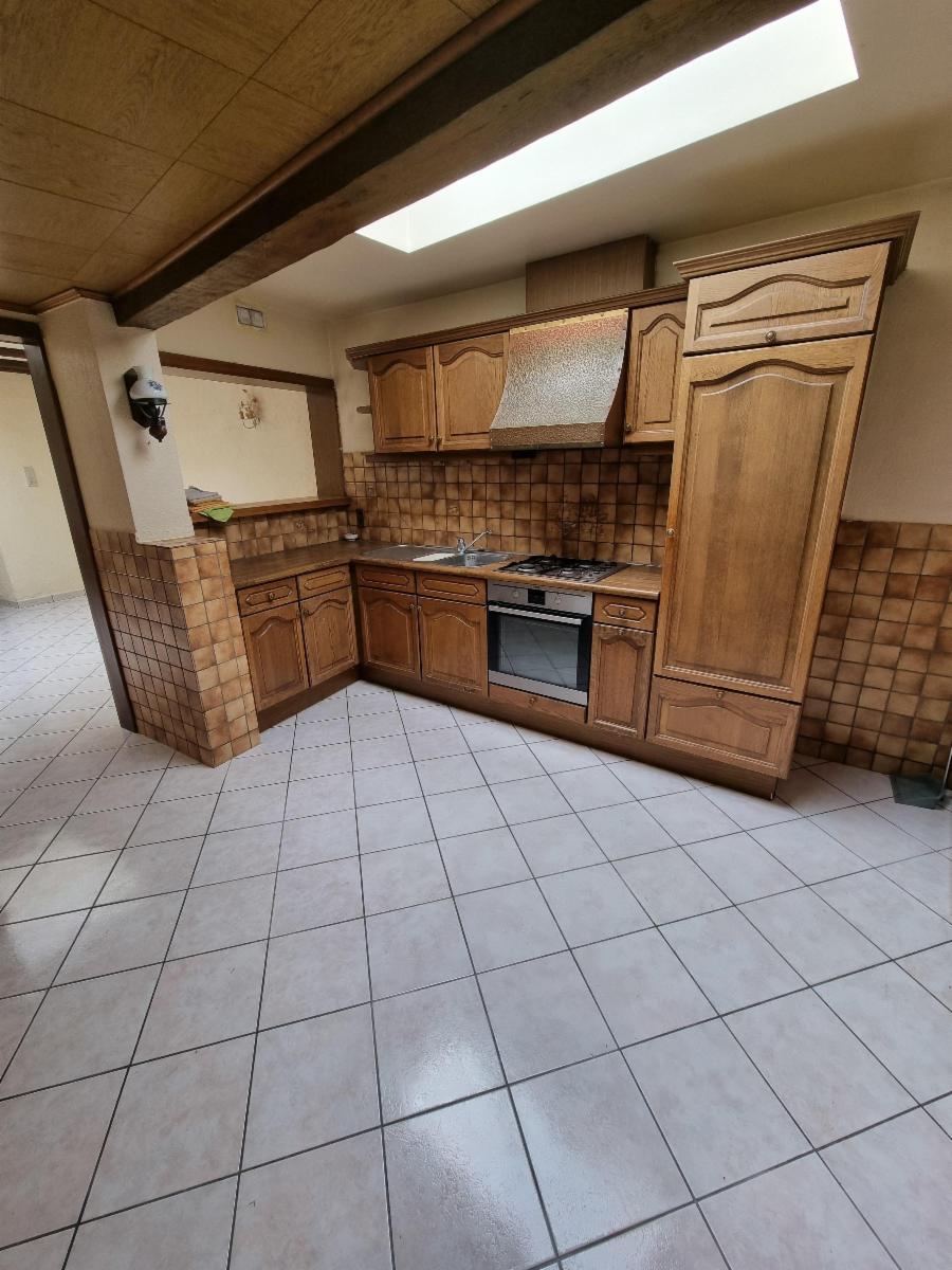 Au rez-de-chaussée : une pièce à l'avant, un grand living (salon-salle à manger), cuisine (four électrique, taque au gaz, frigo et évier), salle de bains (WC, évier, douche).