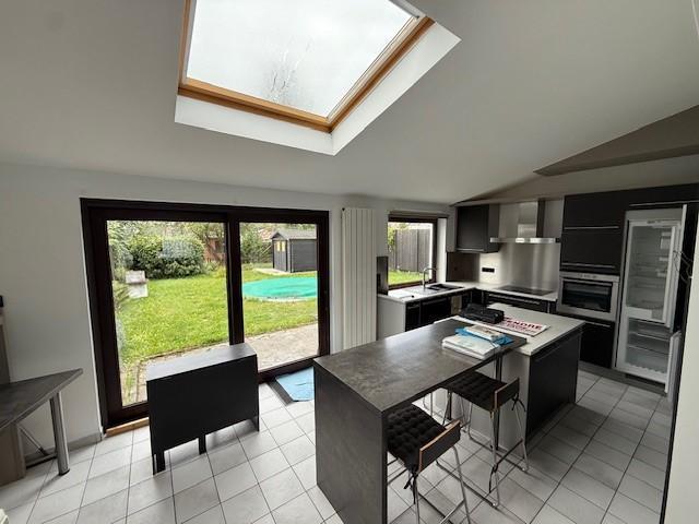 RUE DES CERISIERS 4 une maison d’habitation 3 façades construction de 1967, lumineuse située dans un quartier résidentiel, proche du centre de La Louvière, commodités, grands axes de circulation, accès autoroute, gare superficie de 7 ares 88 ca RC : 652 euros PEB numéro 20250922017535 classe énergétique E, consommation énergie spécifique : 391 Kwh/m².an, consommation énergie totale : 60.618 kwh.an, installation électrique non conforme composition : S-s : 3 caves dont 2 petites. Rez : Hall d’entrée avec cage d’escaliers, grand living (salon, salle à manger), bureau, grande cuisine équipée ouverte (année 2008) avec micro-ondes, four, lave-vaiselle, taque, four, friteuse encastrée, frigo congélateur, hotte. Etage : 3 chambres (2 moyennes, une petite), wc, hall de nuit, salle de douche avec lavabo (2019), grenier aménageable. Piscine non chauffée, atelier d’artiste pouvant servir de local professionnel pour profession libérale, 2 abris de jardin. Passage latéral avec possibilité de garer 2 voitures, garage pour une voiture, possibilité de garer une voiture dans la descente, façade repeinte en 2020 , raccordement : eau, gaz, électricité, citerne eau de pluie, adoucisseur d’eau (2018), chauffage central gaz avec eau chaude sanitaire, chaudière renouvelée en 2018, toiture refaite en 2021. Offre à partir de 275.000 euros. Visites : renseignement en l’étude.