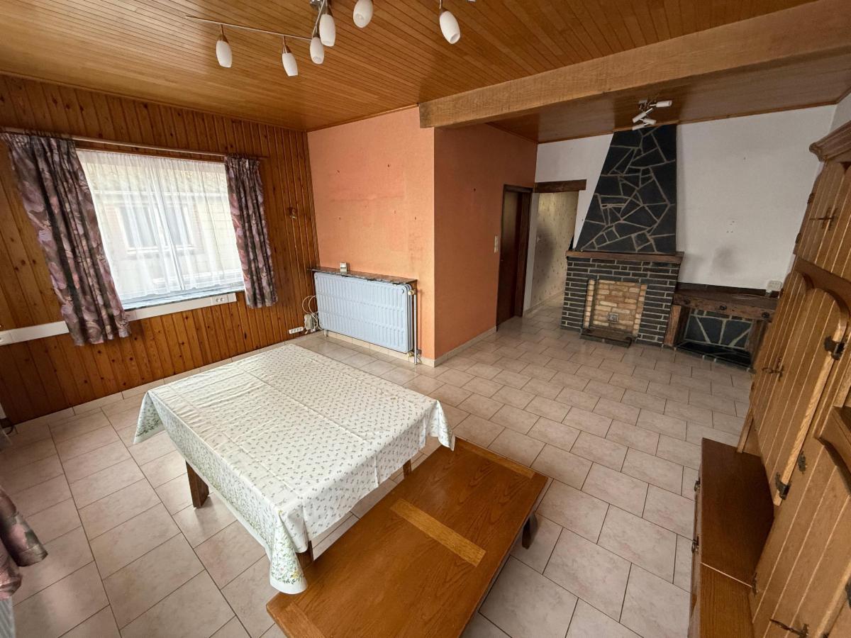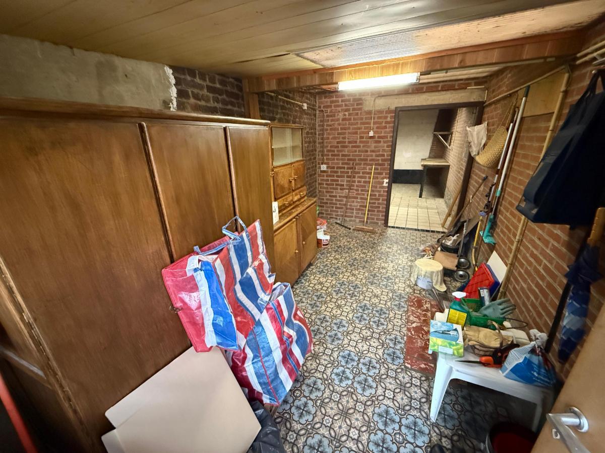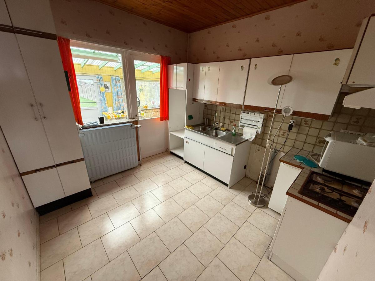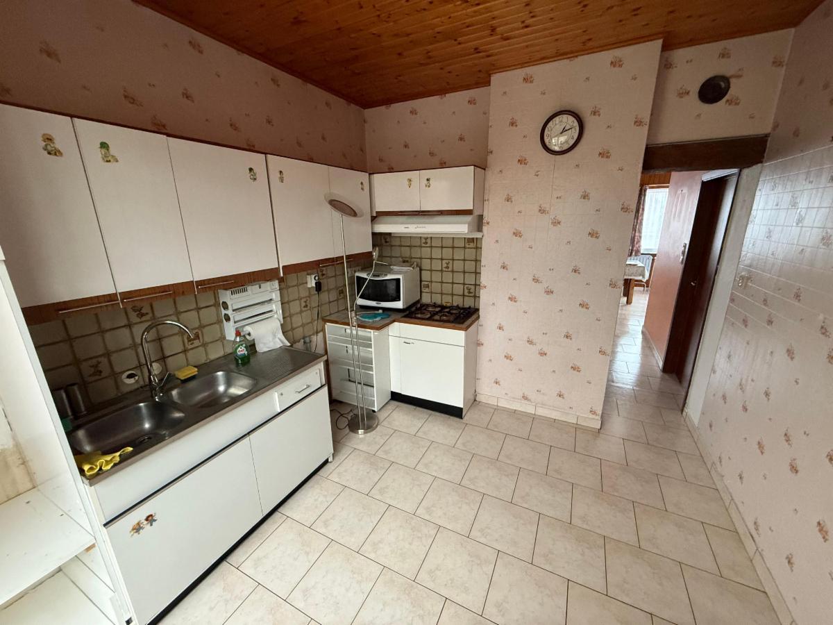 Maison 3 façades (1964) (+/-119 m²) avec garage et porte automatique (avec fosse) et jardin (3a 52ca) (accès par le fond également) comprenant au sous-sol : 2 caves avec 2citernes à mazout de 1200 L (hors d'usage) ; au rez de chaussée : hall, wc, séjour, cuisine à réenvisager, véranda et remise/atelier; au 1er étage avec STANNAH ; 3 chambres, sdb ; terrasse, chaudière gaz de ville, chassis DV Alu, toiture en tuiles,