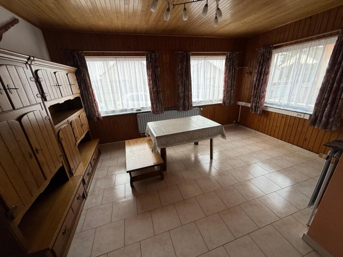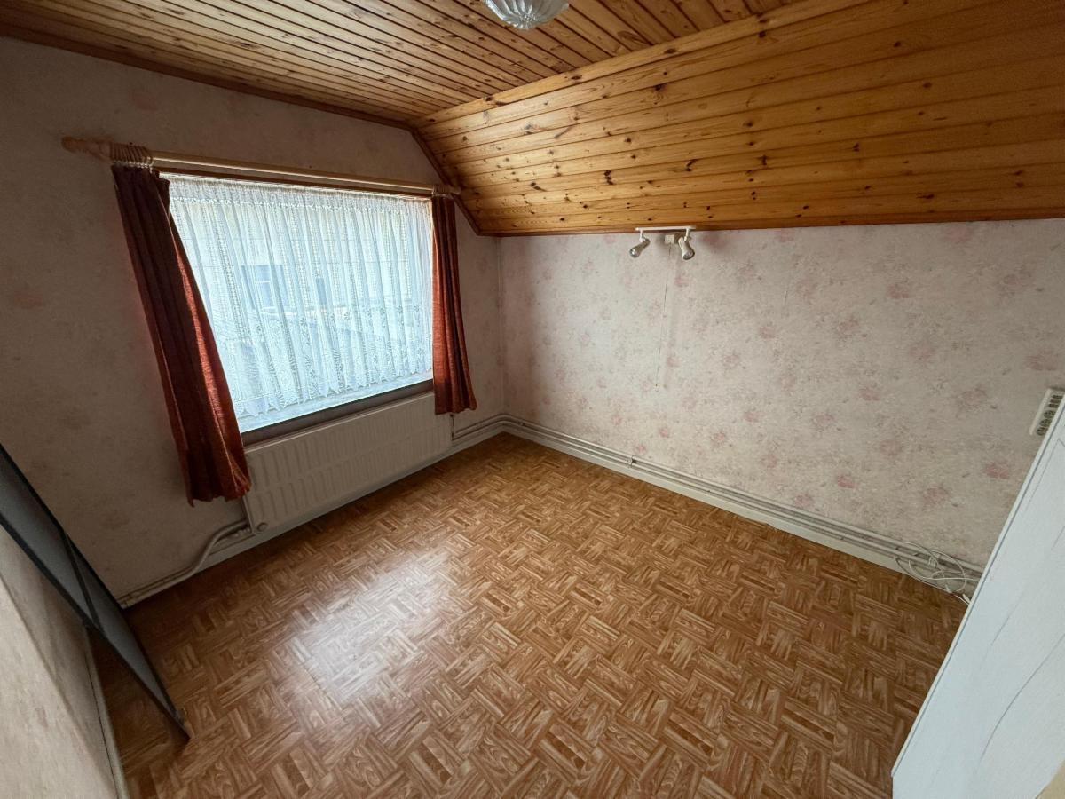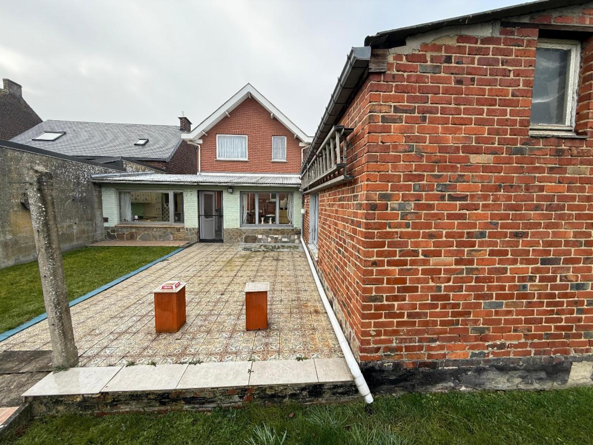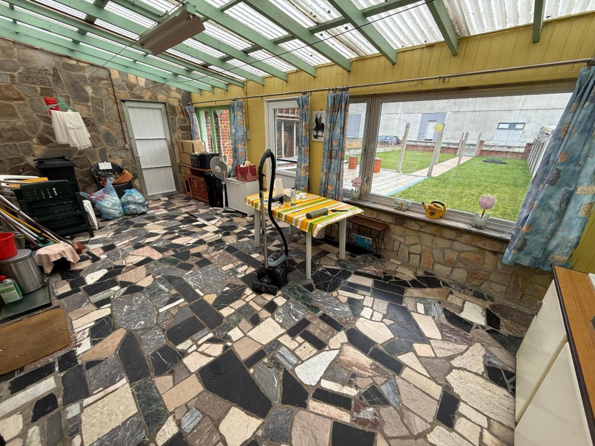 Maison 3 façades (1964) (+/-119 m²) avec garage et porte automatique (avec fosse) et jardin (3a 52ca) (accès par le fond également) comprenant au sous-sol : 2 caves avec 2citernes à mazout de 1200 L (hors d'usage) ; au rez de chaussée : hall, wc, séjour, cuisine à réenvisager, véranda et remise/atelier; au 1er étage avec STANNAH ; 3 chambres, sdb ; terrasse, chaudière gaz de ville, chassis DV Alu, toiture en tuiles,
