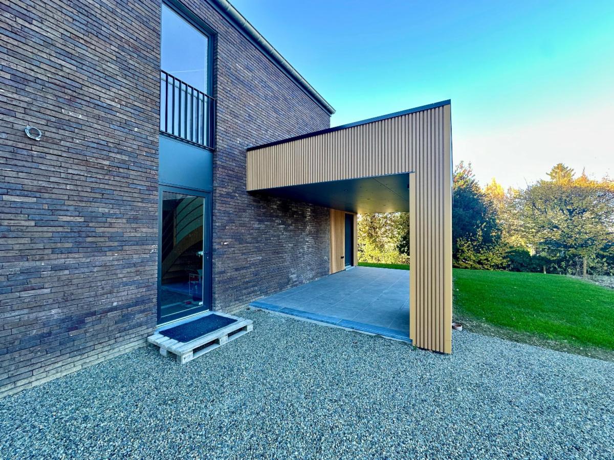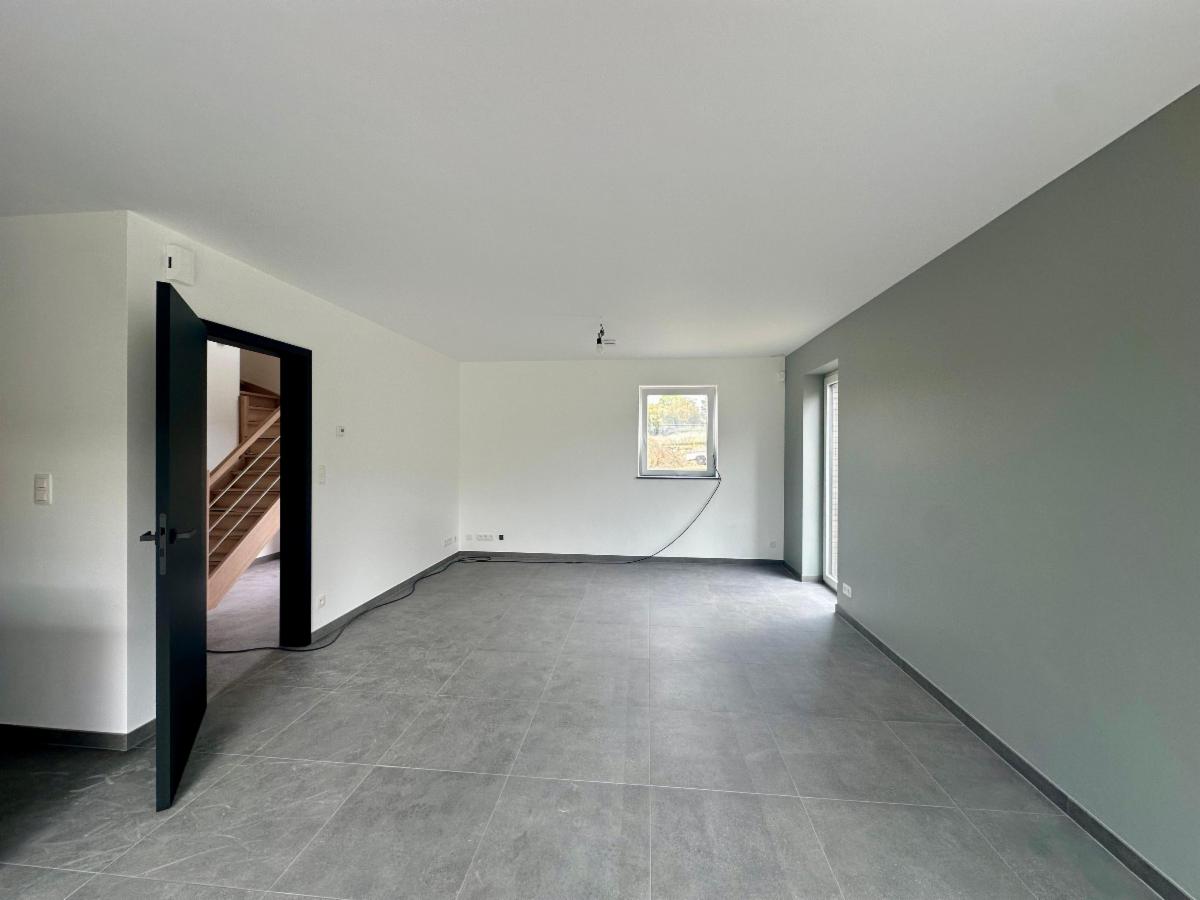 Techniques : PEB A, chauffage sol, pompe à chaleur Buderus, ventilation double flux, isolation haute performance, système d’alarme, châssis DV à haut rendement, citerne d’eau de pluie 10.000L et microstation d’épuration individuelle, peintures réalisées partout, sol carrelé ou paquet, RC à déterminer.