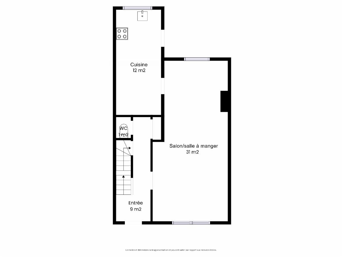 - Au rez-de-chaussée : un grand hall d'entrée, un spacieux séjour, une cuisine équipée ainsi qu'un WC.