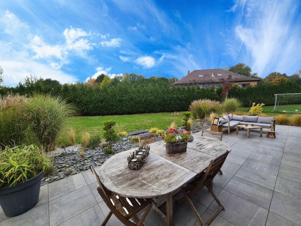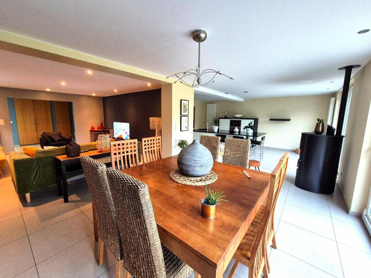 2 grands garages de 3 voitures avec portes télécommandées et 2 emplacements extérieurs, terrasse de 70m2, beau jardin orienté SUD-OUEST, chauffage central au gaz (chaudière à condensation), 16 panneaux photovoltaïques, châssis PVC double vitrage avec volets, poêle à pellets programmable, adoucisseur d'eau, citerne d'eau de pluie, portail MAGIFER avec détecteur de mouvements, toiture isolée, électricité conforme.