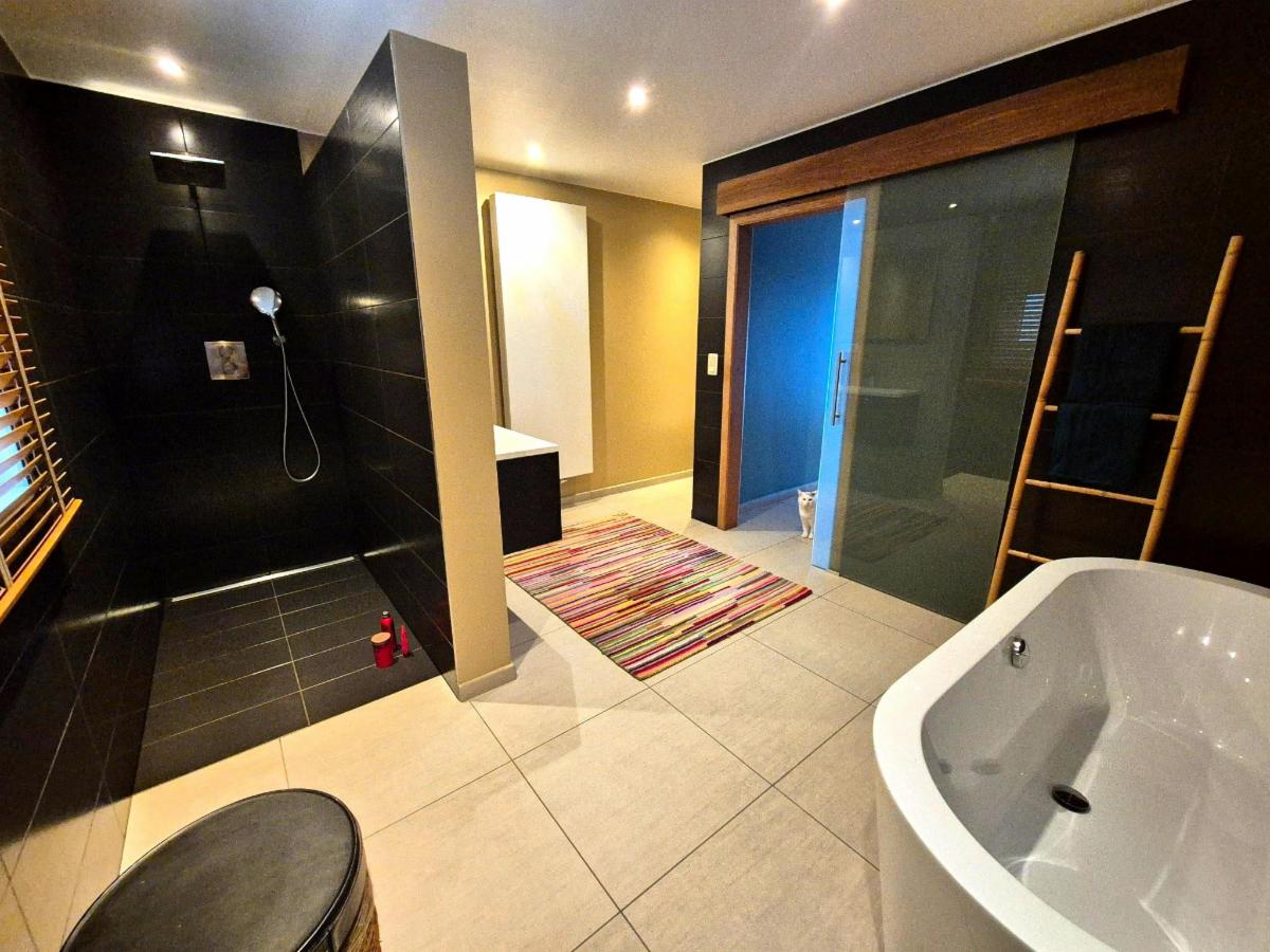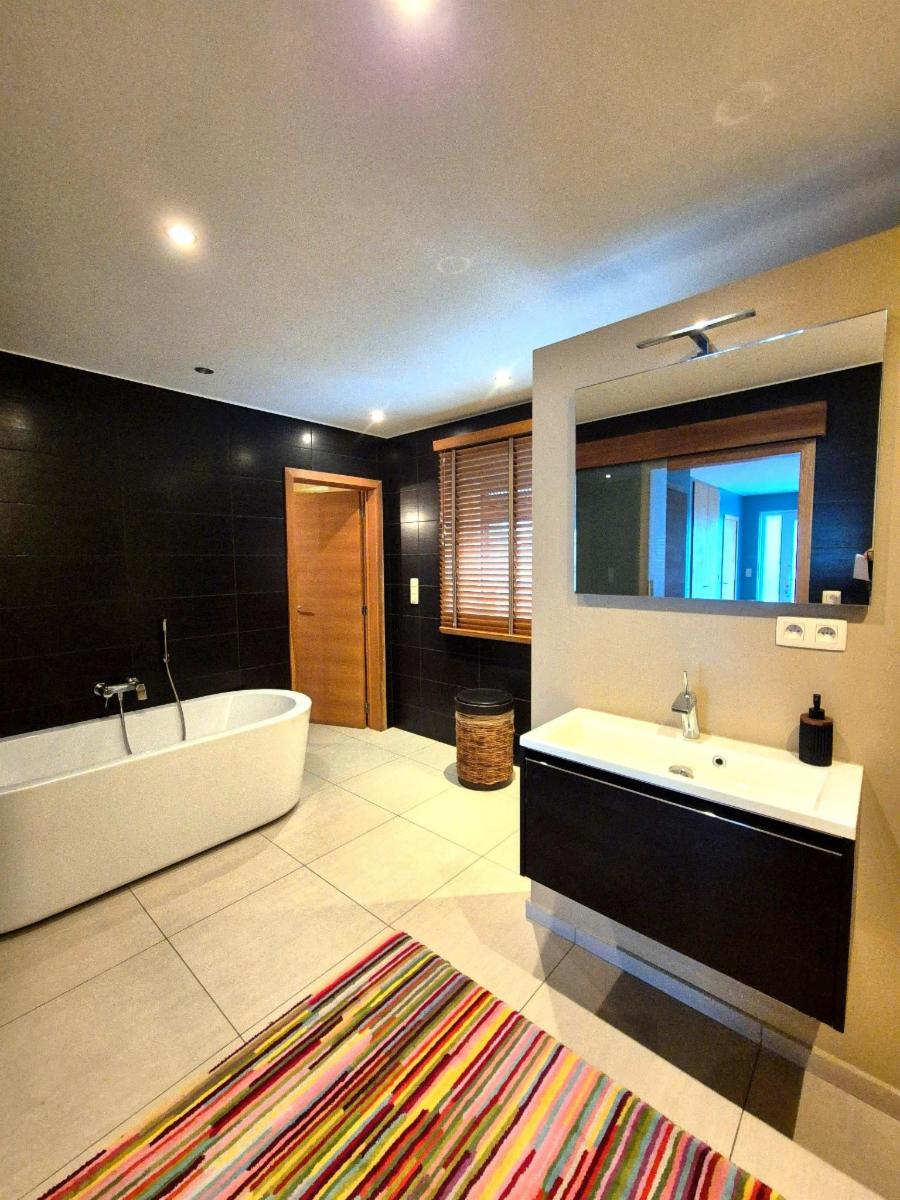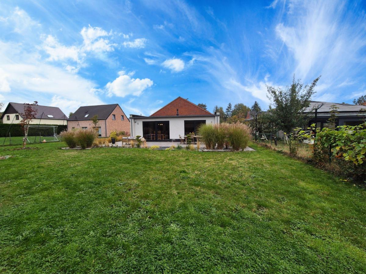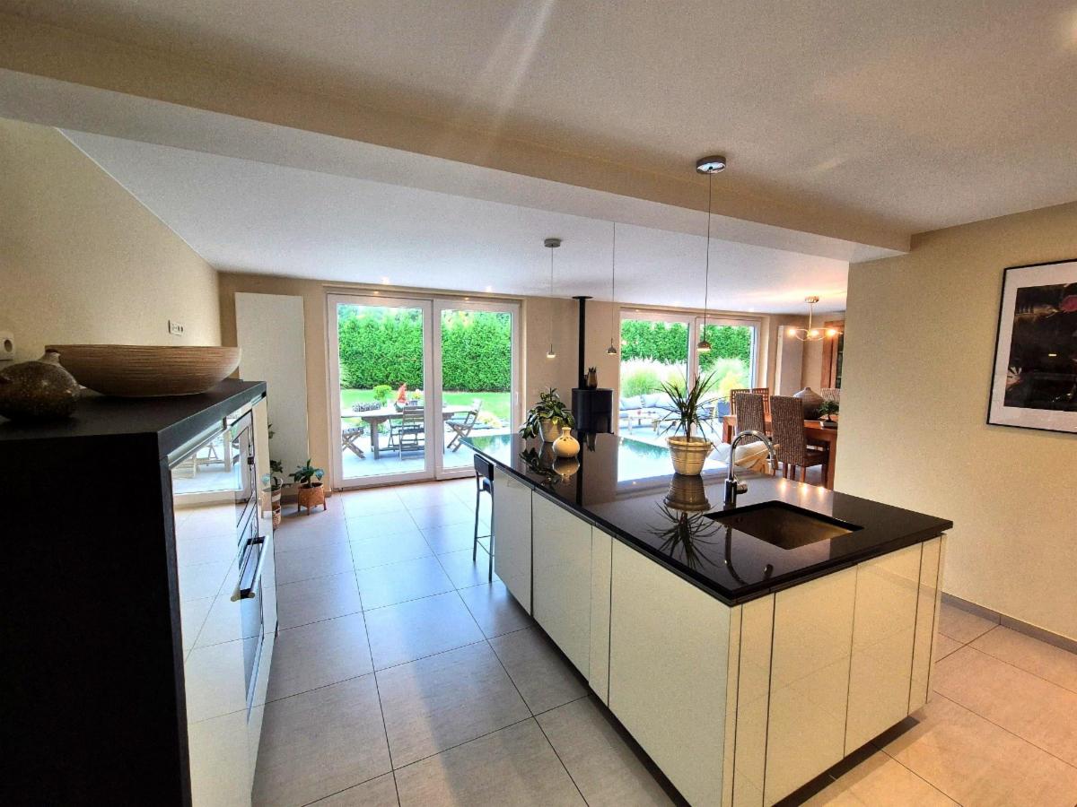 Hall d'entrée avec vestiaire, wc individuel, spacieux et lumineux living ouvert sur la cuisine super-équipée + îlot central (2 grandes baies vitrées), hall de nuit, 3 belles chambres, dressing attenant à la salle de bain avec baignoire, douche à l'italienne, buanderie équipée d'un double évier.