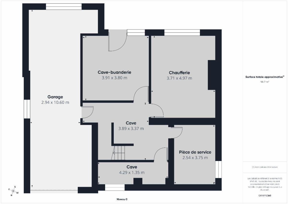 - Au sous-sol : plusieurs caves sous toute la superficie de la maison, dont une buanderie, une chaufferie, une cave compteurs (avec toilette) ainsi qu’un grand garage avec espace atelier.