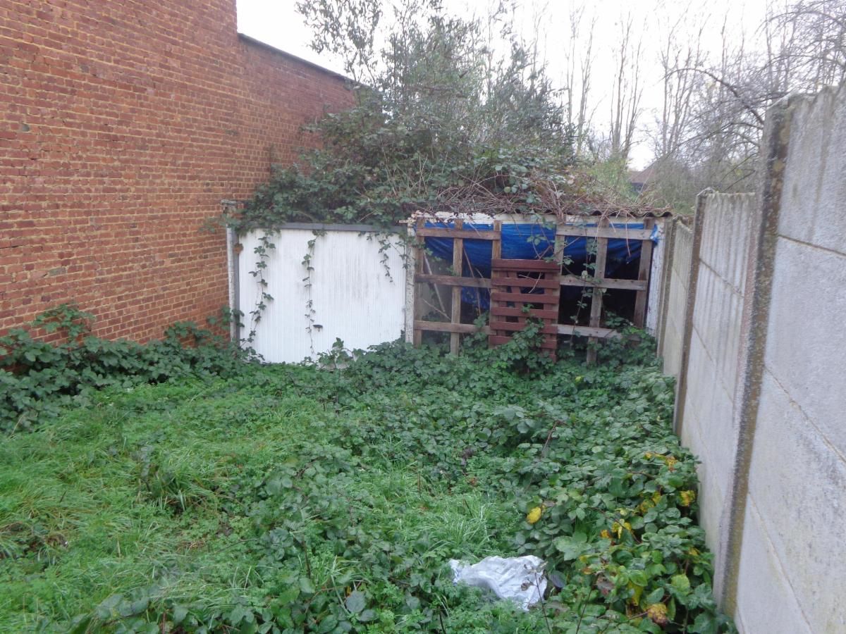 terrain avec 2 garages - environ 5,50 mètres de façade sur +/- 70 m de profondeur (mesures approximatives et sans aucune responsabilité)