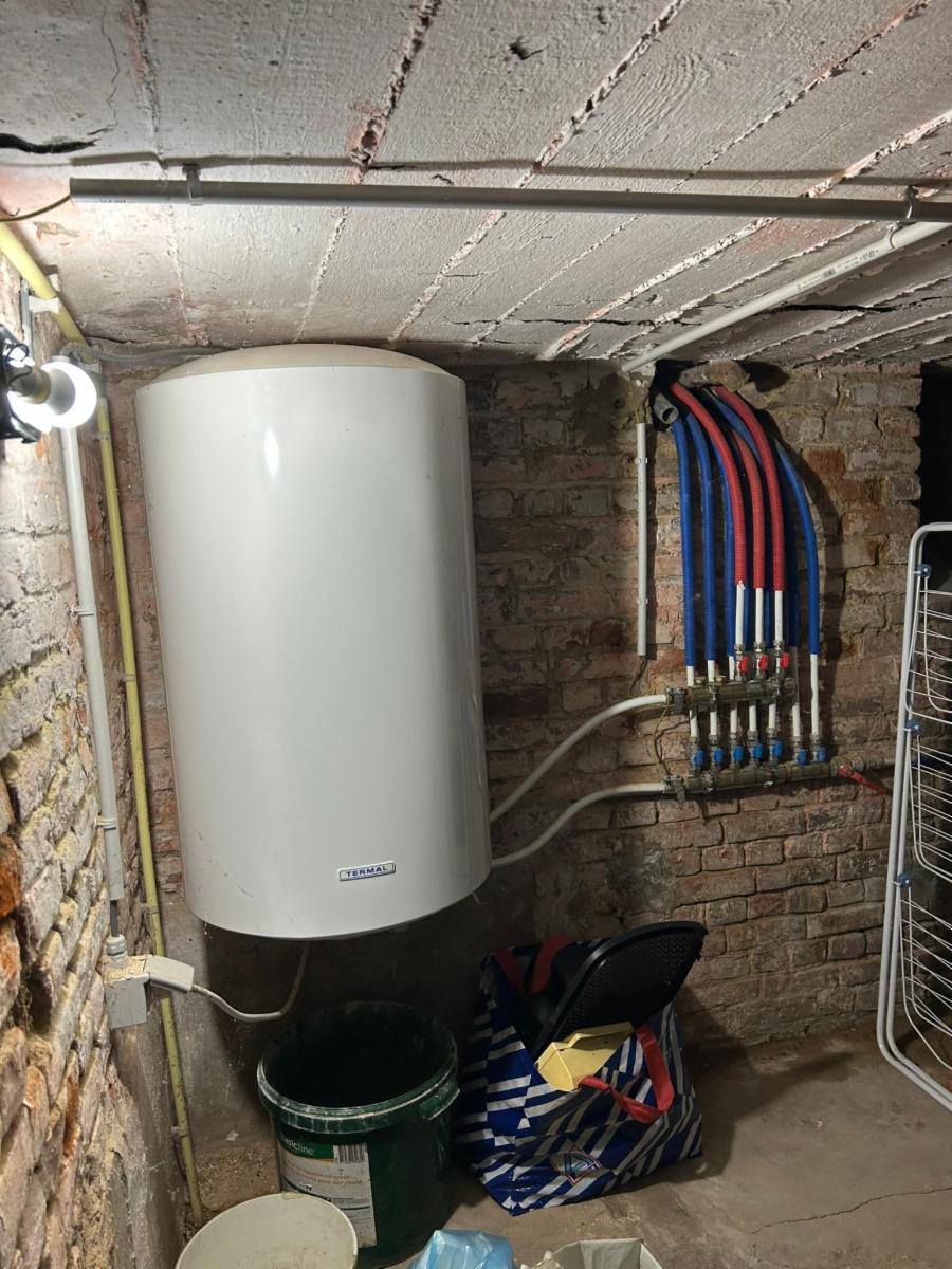Hall d’entrée, séjour, accès cave, living, cuisine cour, hall de nuit, salle bain, et une chambre.
