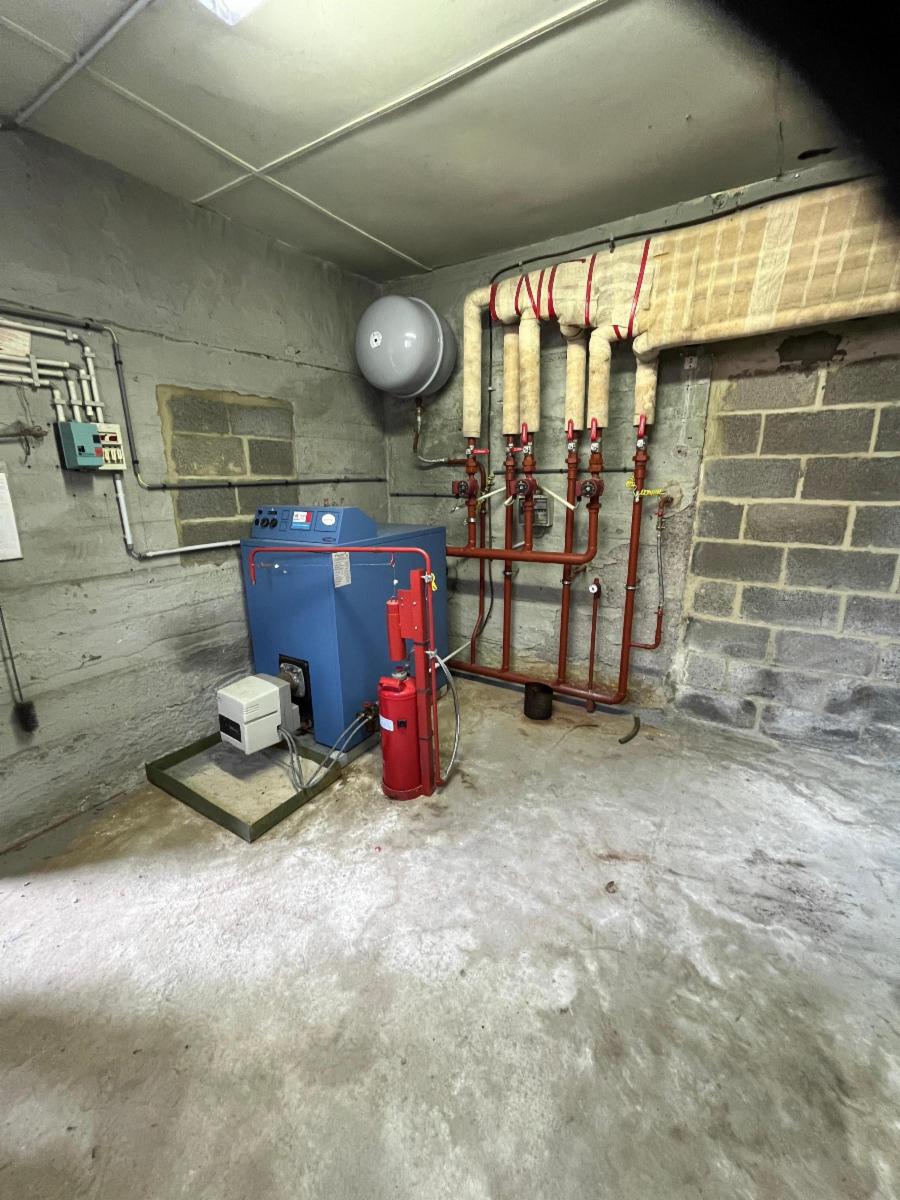 Commodités : eau de distribution, chauffage central mazout (installation récente 2015 avec chaudière St Roch, isolation asbeste, 5 cuves 1100 1 ( + bac anti débordement), électricité sommaire, châssis bois simple vitrage en mauvais état.