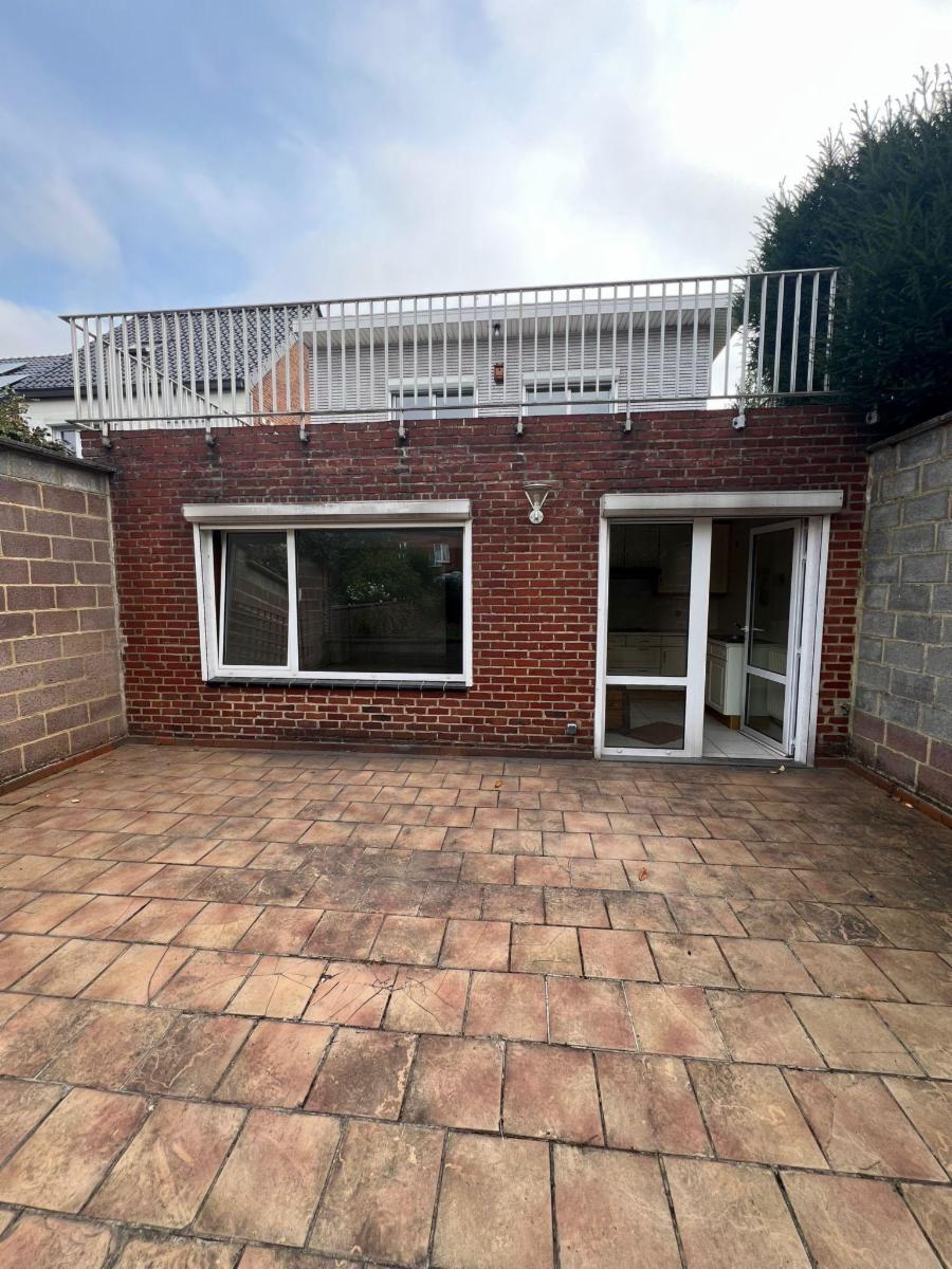 Baies vitrées en aluminium, double vitrage et volets à l'arrière. (PEB F).