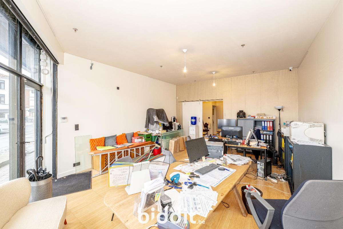 Comprenant le magasin même avec sa porte, une « réserve » n° 4 au 2e sous-sol. R.c.n.i. 2.915€. Loué (bail commercial non enregistré). Zone d’habitation, liseré de noyau commercial. Visites sur rendez-vous (àpd 22/1 au 24/2 incl.) : mardis de 14-16h et jeudis de 10-12h.