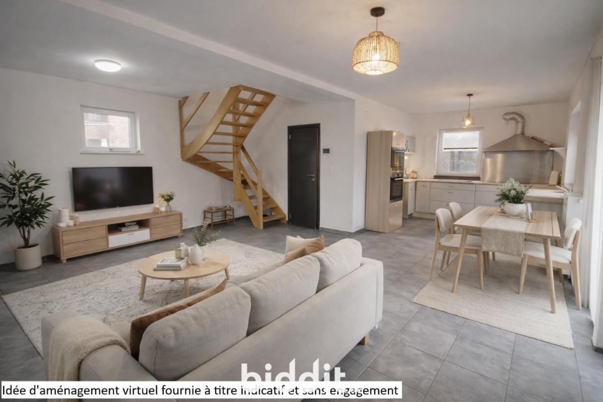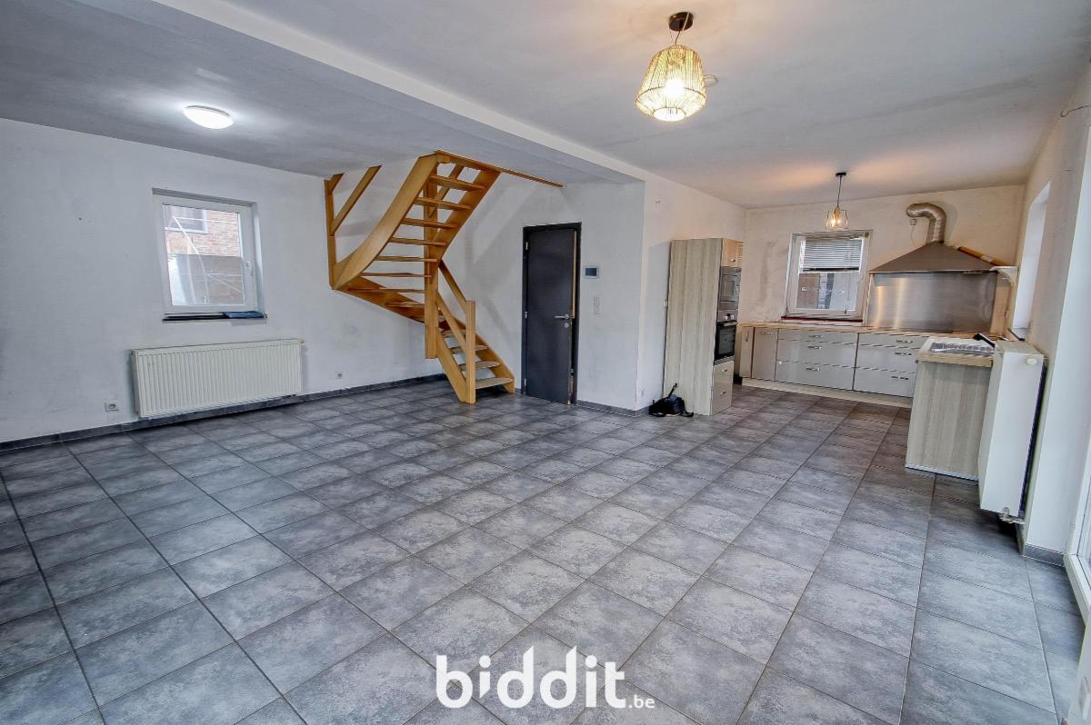 - au rez-de-chaussée : un hall d’entrée, un living avec une cuisine, un W.C., un chaufferie ;