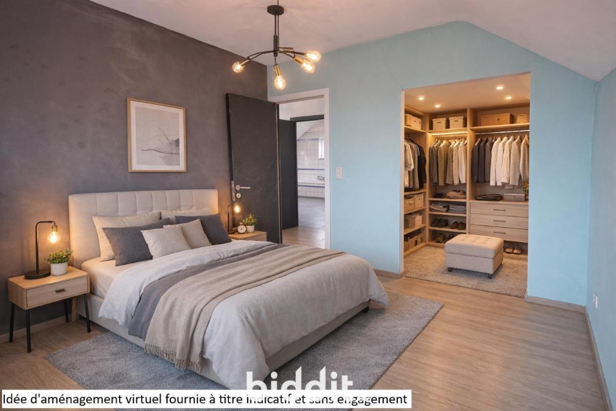 - au 1er étage : un hall de nuit, trois chambres (dont une avec dressing), une salle de bains (deux lavabos, un W.C., une baignoire, un espace douche à terminer) ;