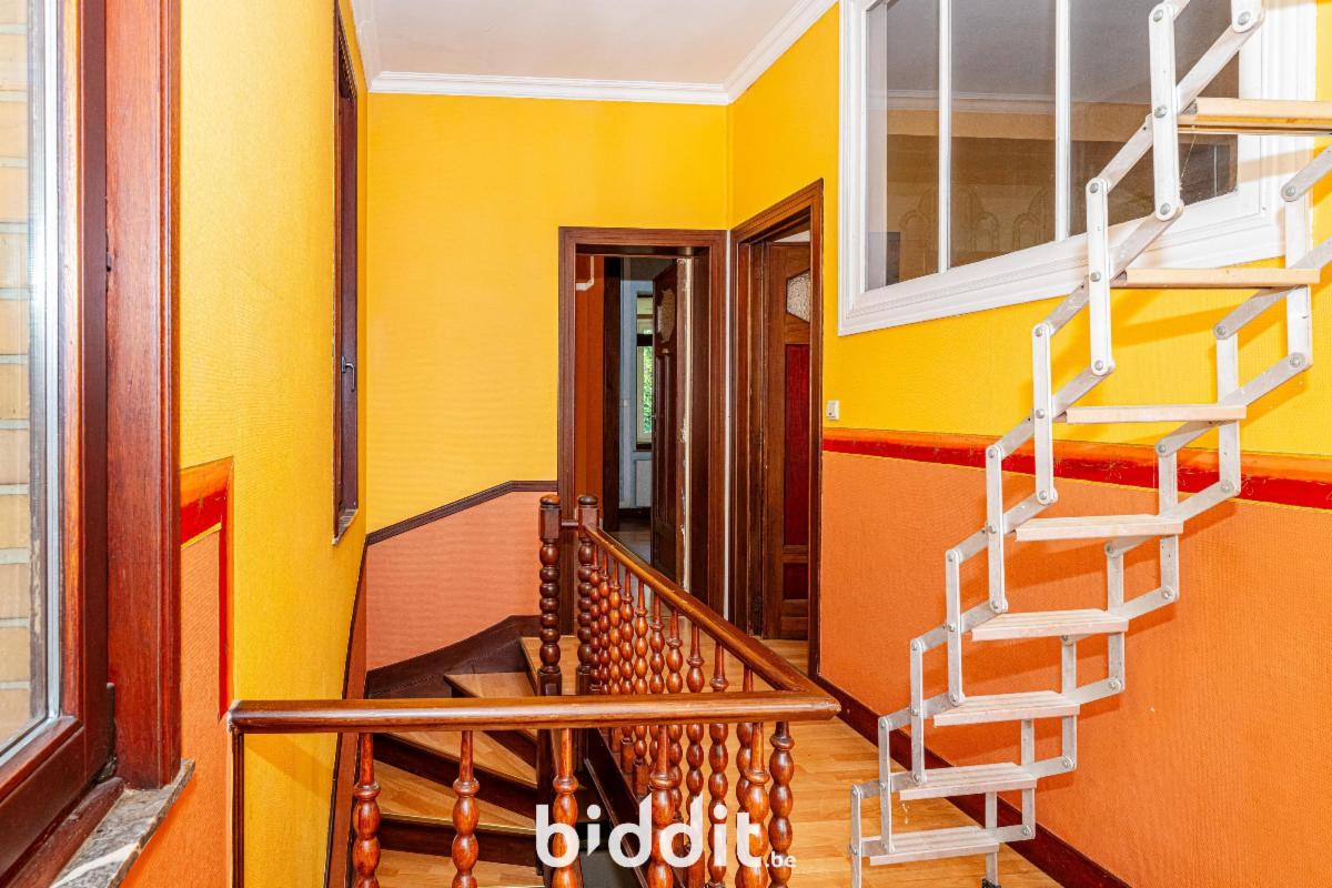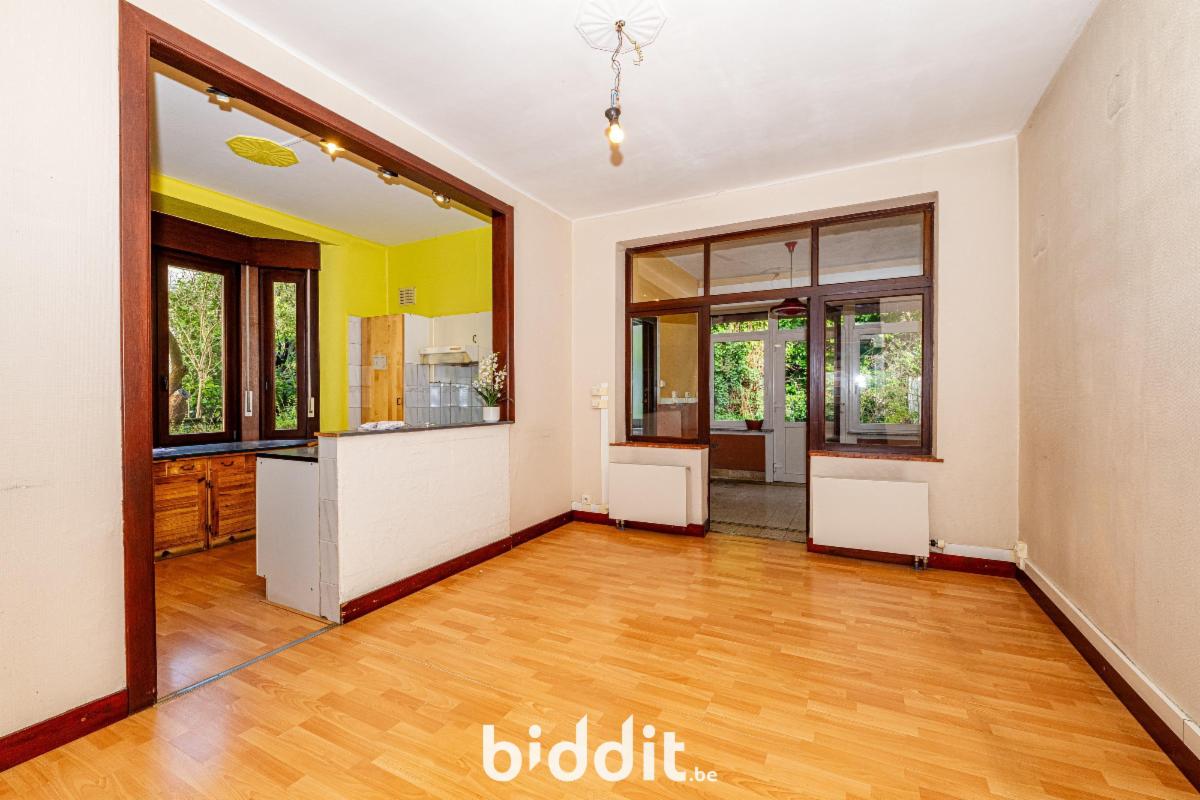 Rue Egide Winteroy 36, sup. 1a 95ca. Comprenant 2 étages : rez : hall, chambre, salon, salle à manger, cuisine, véranda, sdb – 1er étage : hall, 4 chambres, sdb – Grenier – Cave + garage intégré. R.c.n.i. 1.509€. Libre d’occupation. Zone d’habitation. PEB : G/658. Contr. électr. non conforme. Visites : mercredis 25 mars et 1-8-15 avril 2026 de 15-17h et samedis 21-28 mars et 4-11 avril 2026 de 11h30-13h30.