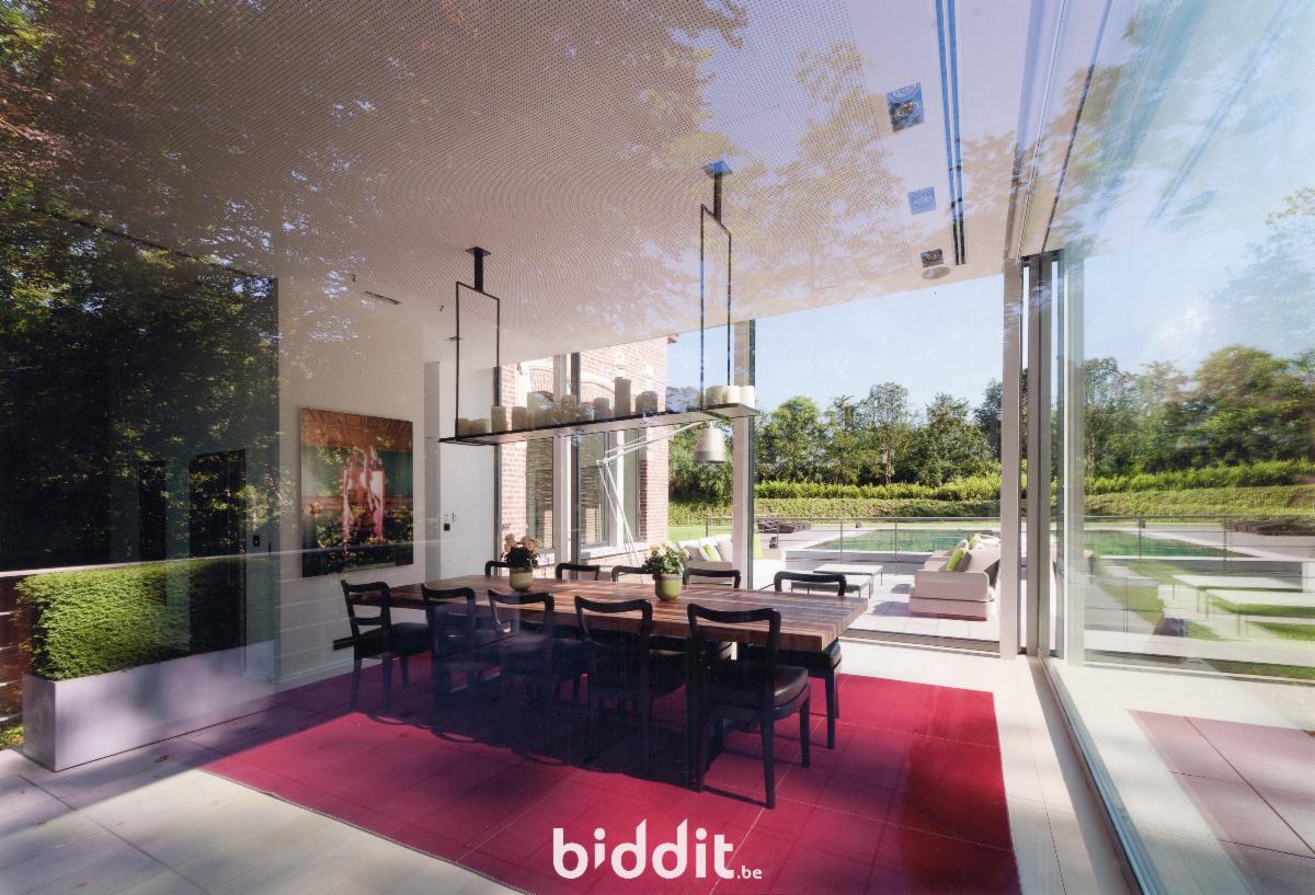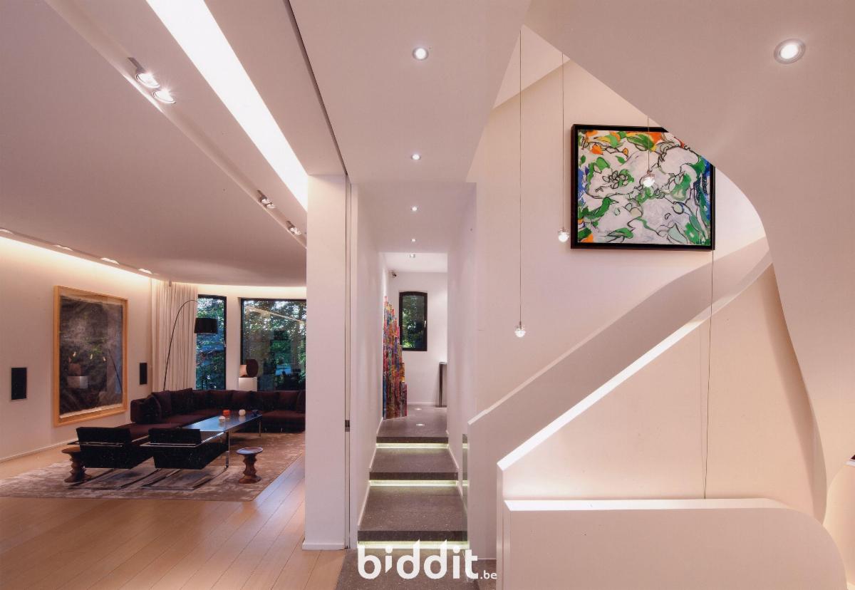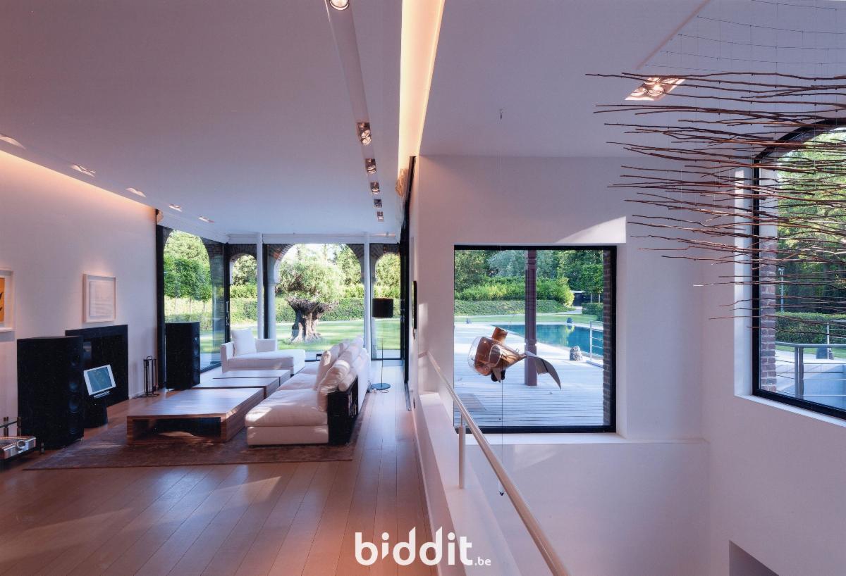 Sise avenue Paul Stroobant 2 pour une superficie de 47a 59ca. Comprenant : A l’extérieur : parking 6 voitures au moins dont 2 avec carport, 1 piscine - Au rdc : hall, double salon avec terrasse et jardin, salle à manger, cuisine - Au 1e ét. : 2 chambres avec 2 terrasses dont 1 avec dressing, 2 salles de bains, 1 bureau - Au 2e ét. : 2 chambres, 2 salles de bains, 1 bureau - Au -1 : salle polyvalente, salle de cinéma, salle de bains + un appartement pour le personnel comprenant 1 chambre, salle de bains, cuisine, salle à manger, cour - Garage intérieur pour 2 voitures. R.c.n.i. 6.813€. Libre d’occupation. ZICHEE, zone de sport ou de loisirs de plein air, zone de parc. PEB G/560. Contr. électr. conforme. Visites : lundis 2-9-16-23/2, 2-9-16-23-30/3, 13-20/4 de 12h30-14h30 et jeudis 5-12-19-26/2, 5-12-19-26/3, 2-9-16/4 de 12h30-14h30.