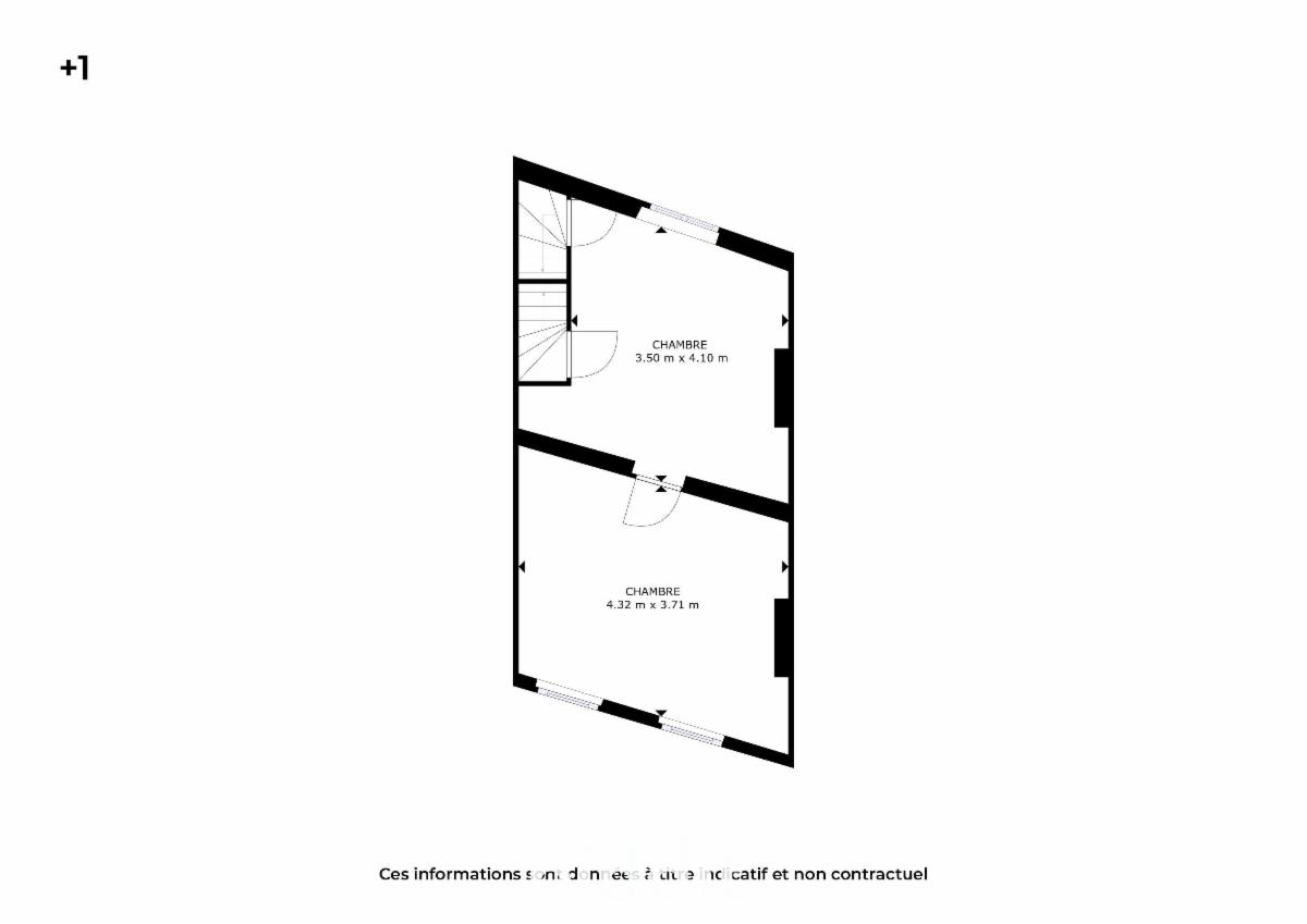 À l’étage, le coin nuit se compose de deux chambres spacieuses : la première d’environ 14,4 m², la seconde d’environ 16 m².