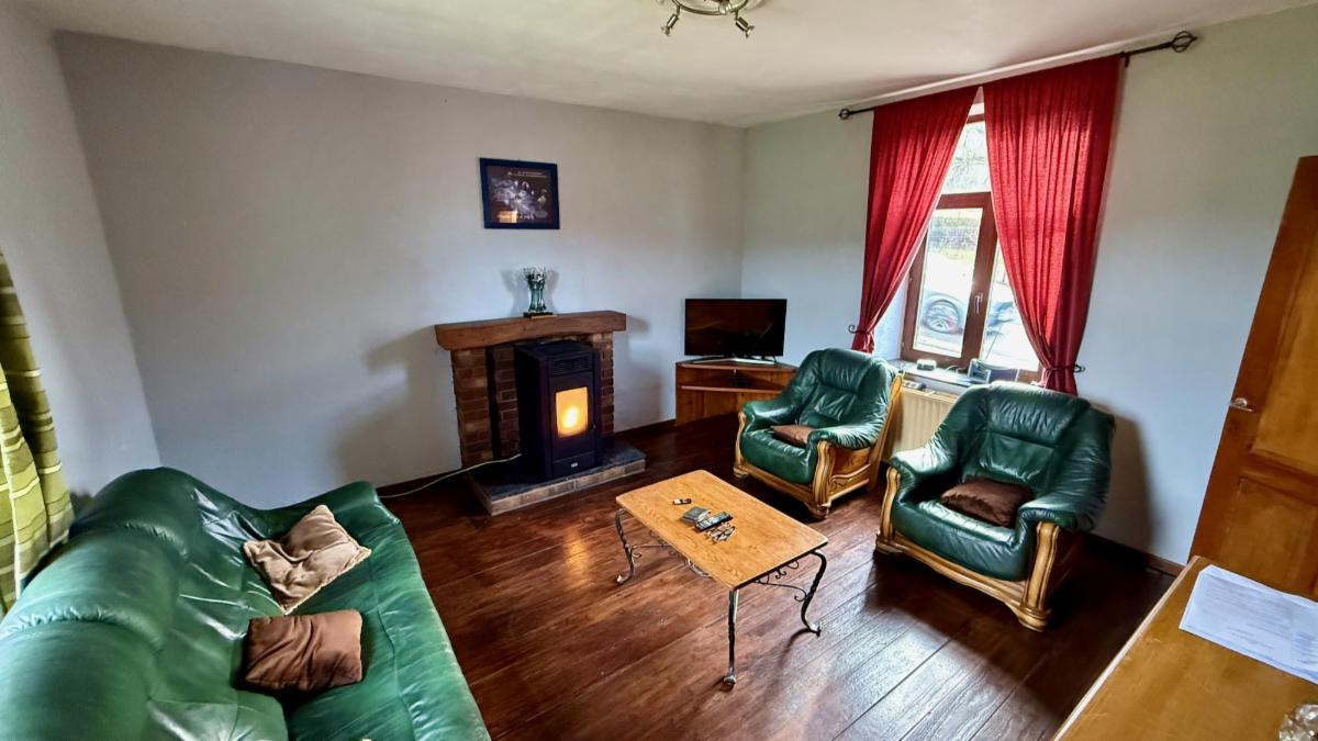 Rez-de-chaussée : Un hall d'entrée menant à un salon chaleureux équipé d'un poêle à pellets récent (inséré dans une cheminée de caractère). Une cuisine fonctionnelle avec espace dînatoire offrant un accès direct à la cour et au jardin.