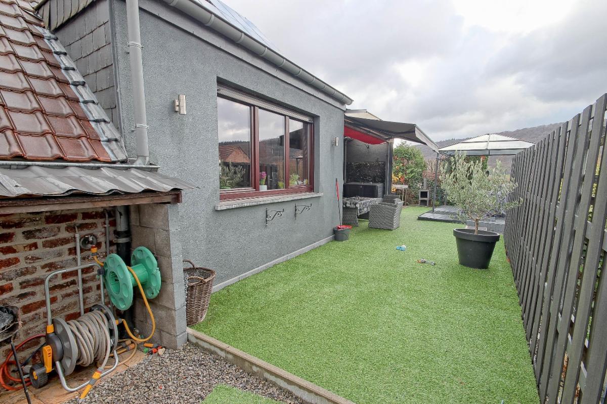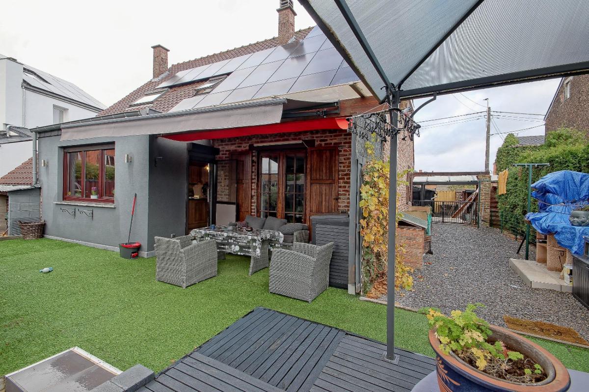La technique est au top : CC mazout neuve, panneaux photovoltaïques, bi-horaire, électricité conforme, citerne d’eau de pluie, alarme, tente solaire, châssis DV bois, portail électrique, porte de garage motorisée.