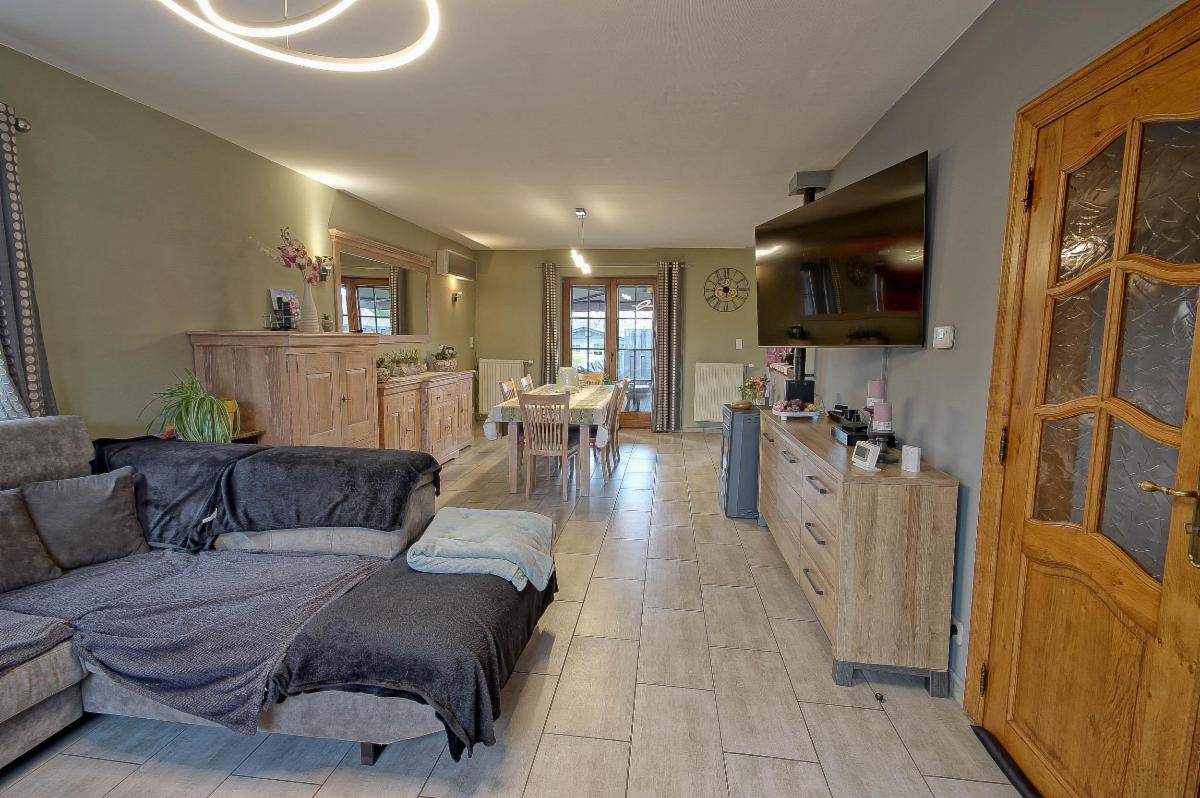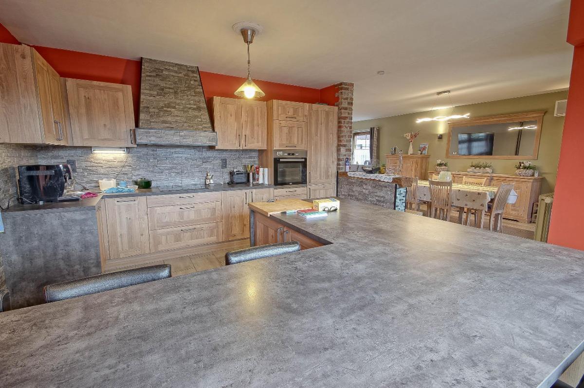 Elle dispose de 3 chambres dont une avec grand dressing, d’un grenier de rangement isolé, d’un magnifique espace de vie ouvert avec poêle à bois + pellet + air co, ainsi que d’une cuisine équipée avec îlot et grand plan de travail.