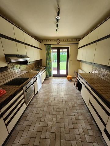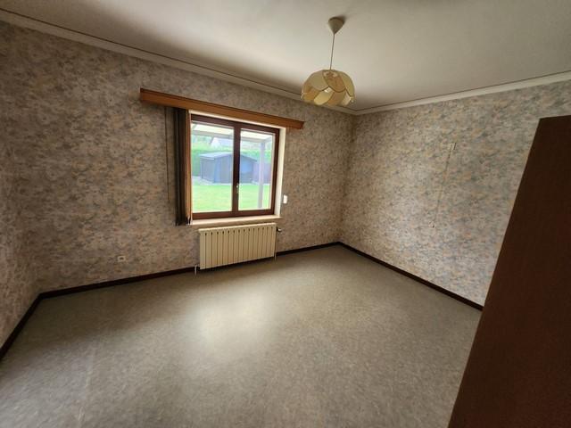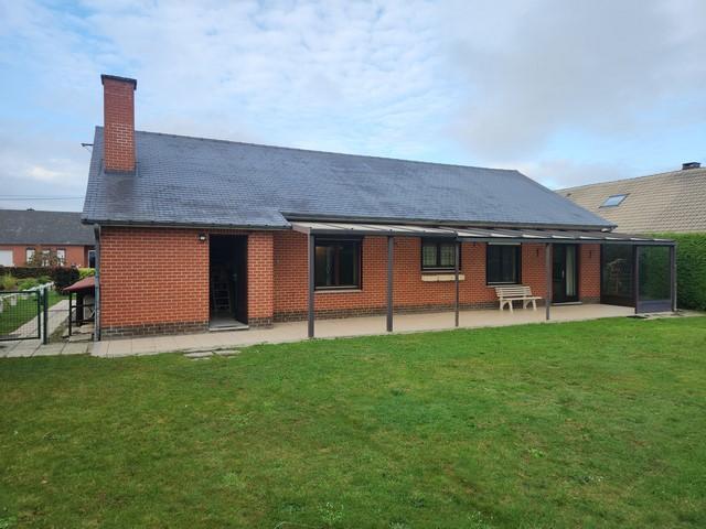 L'étude MISONNE & MICHIELSEN vous présente cette charmante maison de type plain pied composée comme suit; Rez-de-chaussée: Hall d'entrée (9m2), salle à manger / séjour (46m2), cuisine (12m2), salle de bains (6m2), chambre 1 (10m2), chambre 2 (13m2), chambre 3 (16m2), toilette (1m2), hall de nuit (7m2), garage (25m2), réserve (2m2). Comble: Grenier non-aménageable. Equipements: Raccord aux égouts, châssis double vitrage bois, couverture de toit en ardoises, chauffage central au gaz "Vaillant", boiler électrique, cassette au bois, citerne d'eau, électricité à remettre en conformité, cuisine équipée, adoucisseur. RC: 1329€. Terrain: 9 ares