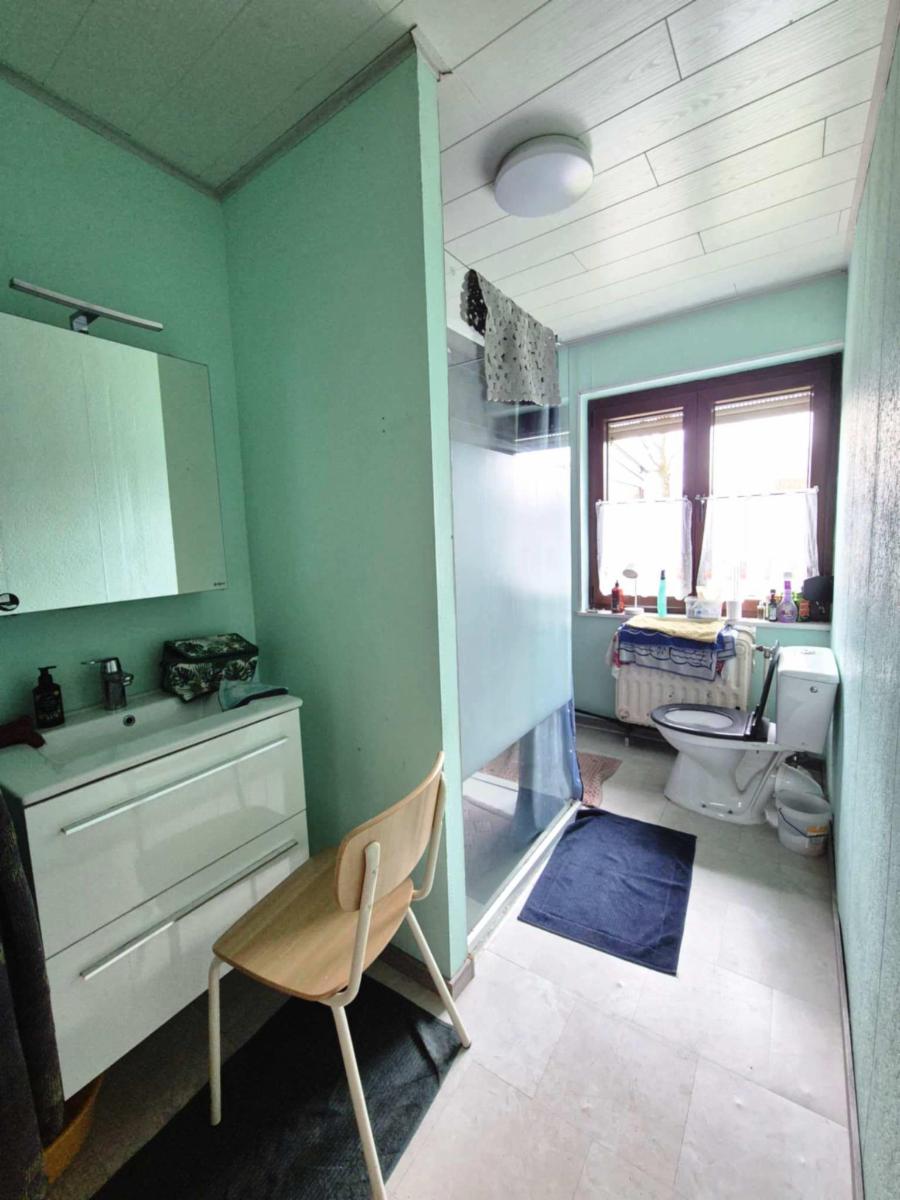 Une Jolie villa de plain-pied rénovée avec garage et jardin clôturé Herdal de Fagnolle, 3 À Mariembourg (Couvin)-Descr. Som. : Ss-sol : garage-rez : hall d’entrée, séjour (31m²), cuisine éq (8m²), véranda (15m²), buanderie, 2 chambres (11 et 15m²), salle de bain (wc, lav, douche it.)-Chauff. Cent. Maz –DV+ volets- Garage- Jardin –PEB G (N°20260405010317) – Travaux récents (isolation, cuisine, salle de bain, châssis ,….)-Maison spacieuse et lumineuse-Quartier calme et agréable- Proximité Centre et Commodités (écoles, commerces, axes routiers…..)-RC : 718€- Sup : 13 A 85CA- Vis. : Sur RDV en l’étude