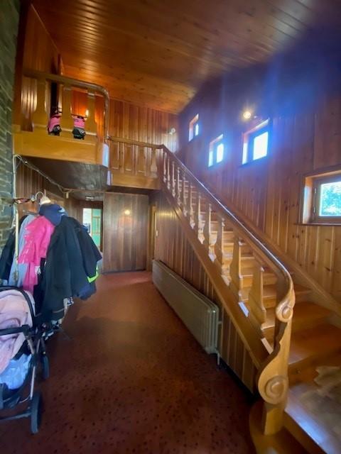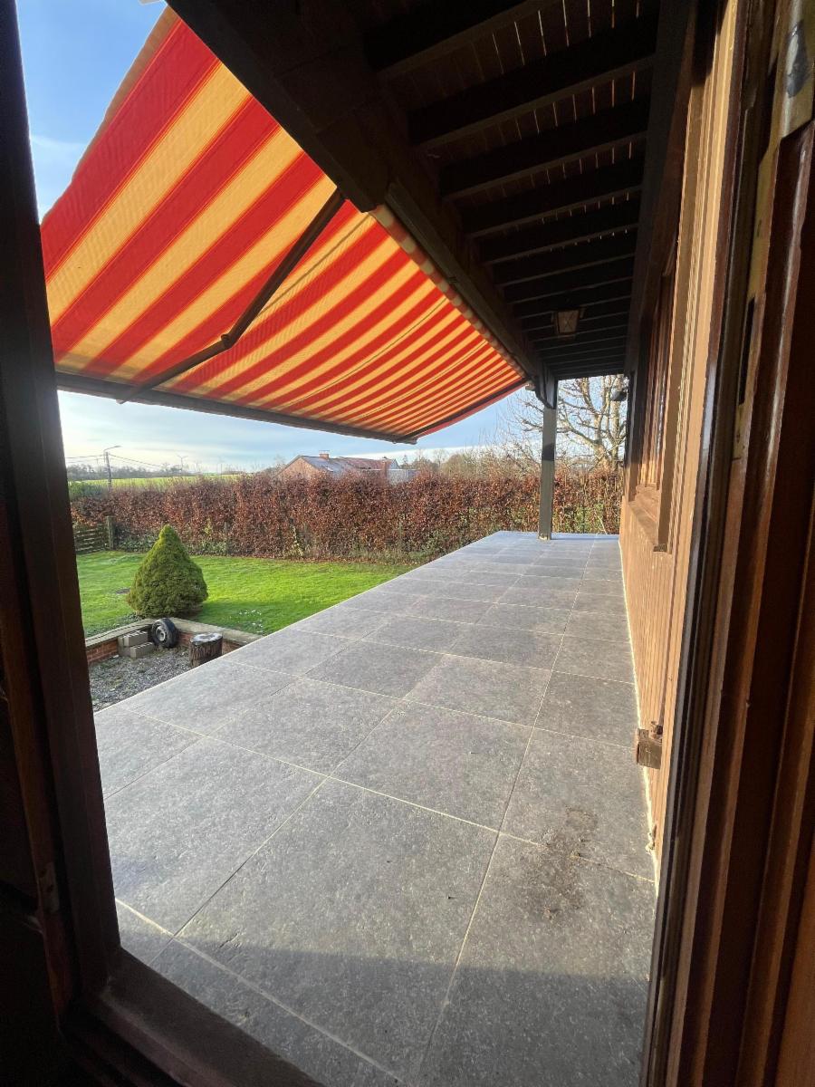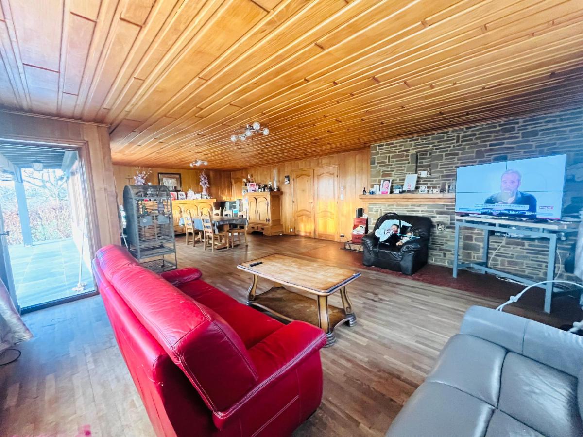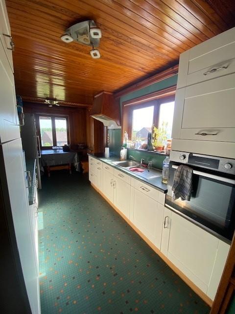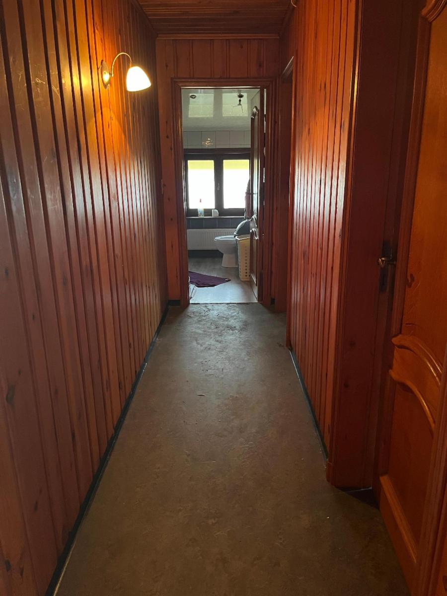 - Au rez-de-chaussée: un hall d’entrée (+/- 21 m²), un séjour/salle à manger (+/- 54 m²), un WC (+/- 2,5 m²), hall avec un petit bureau (+/- 7 m²), une salle de jeux (+/- 7 m²) et une cuisine (+/- 15 m²). Terrasse qui fait toute la façade avant et le côté gauche vers la cuisine.