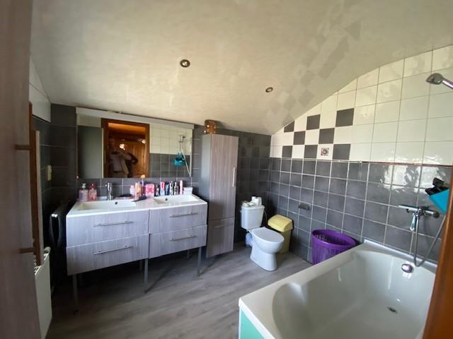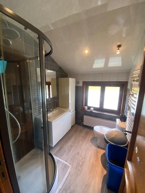 - Au 1er étage: un palier/cage d’escalier (+/- 21 m²), un hall de nuit (+/- 5 m²), une chambre parentale avec salle de bain (+/- 21,5 m² et 6,5 m²) et terrasse (façade avant), une chambre avec dressing intégré (+/- 10 m²), une chambre enfant (+/- 8 m²) et une salle de douche (+/- 4 m²).