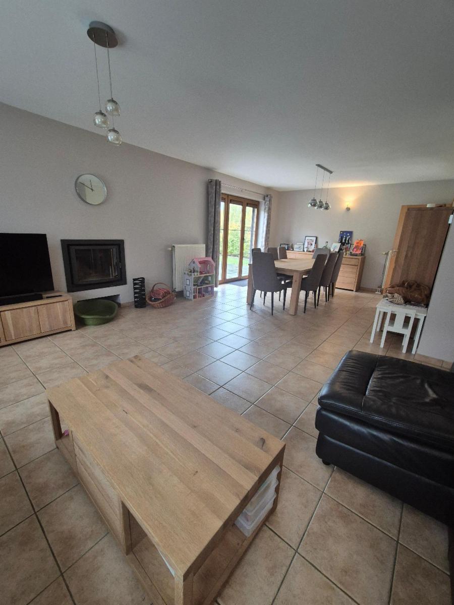 Au rez-de-chaussée: un hall d'entrée, un WC séparé, un vaste séjour lumineux avec feu ouvert, une cuisine équipée avec espace repas, une salle de bains, trois chambres dont une avec espace douche, un bureau, une buanderie, un double garage.