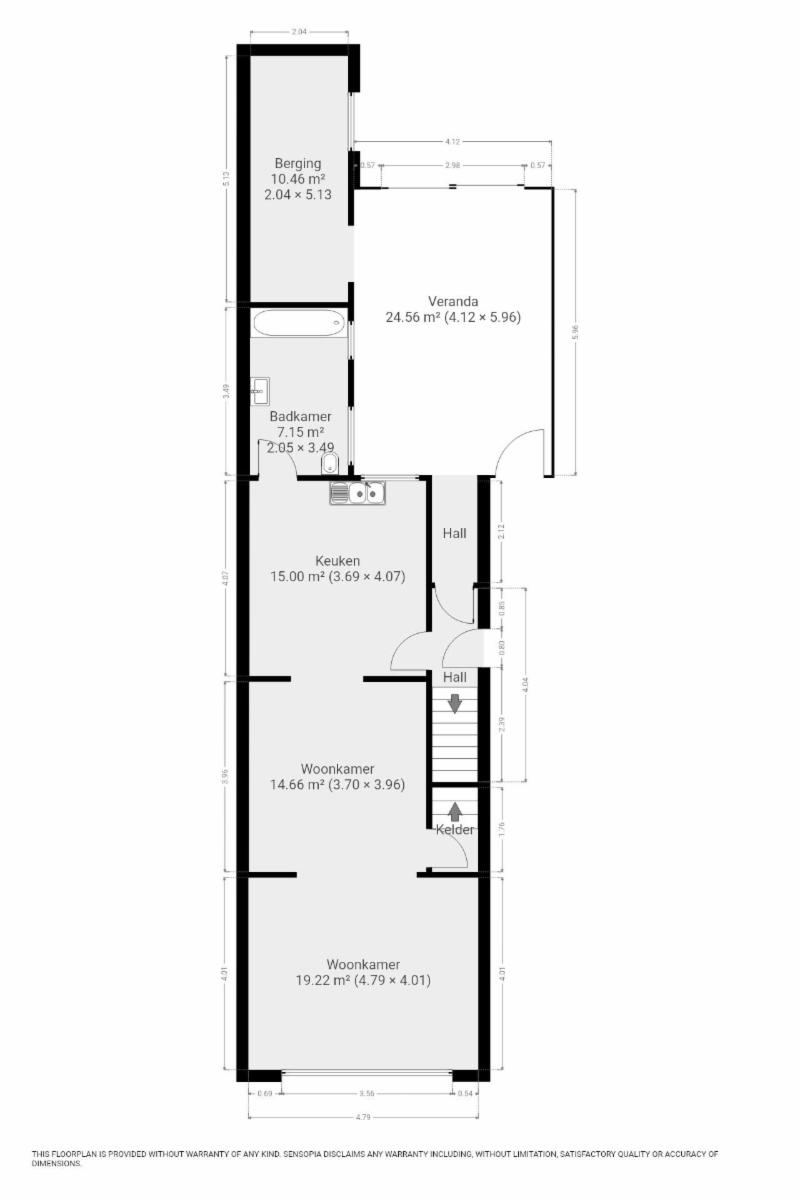 Indeling gelijkvloers: via de hal komt u in de woonkamer, keuken en badkamer. Via de veranda komt u in de tuin en berging. Op het 1e verdieping bevinden zich 2 slaapkamers. Op de 2de verdieping is er een derde slaapkamer.