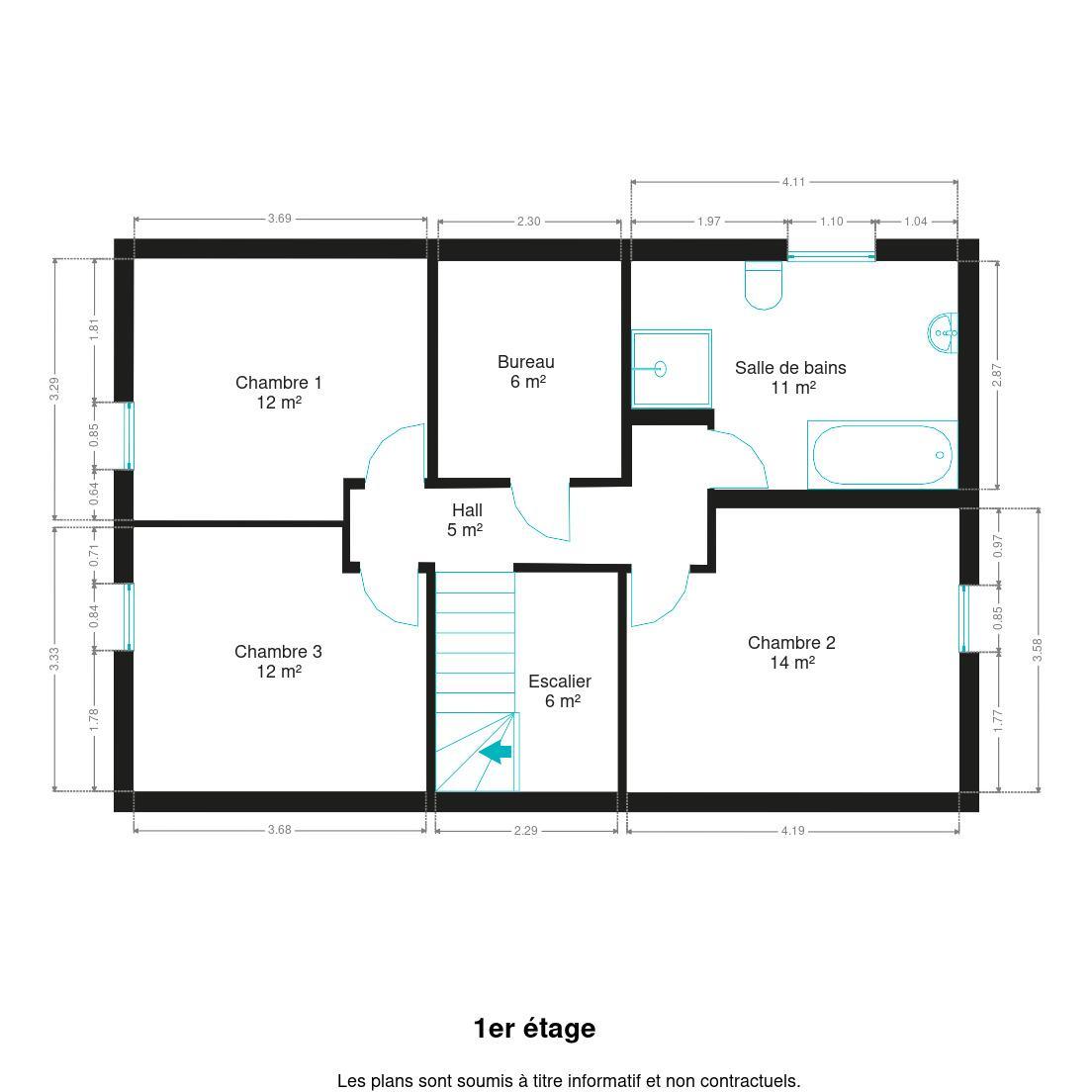 Étage : 3 chambres, bureau et salle de bains