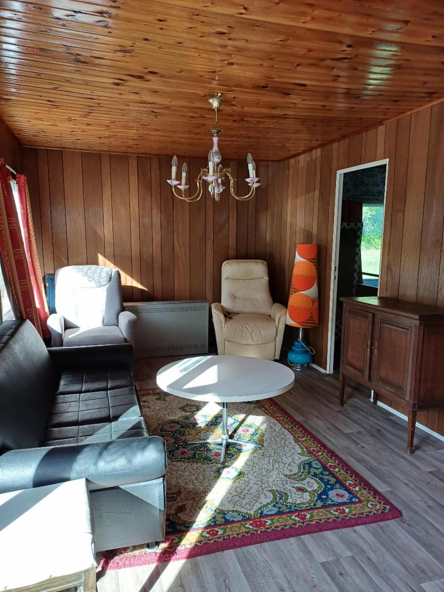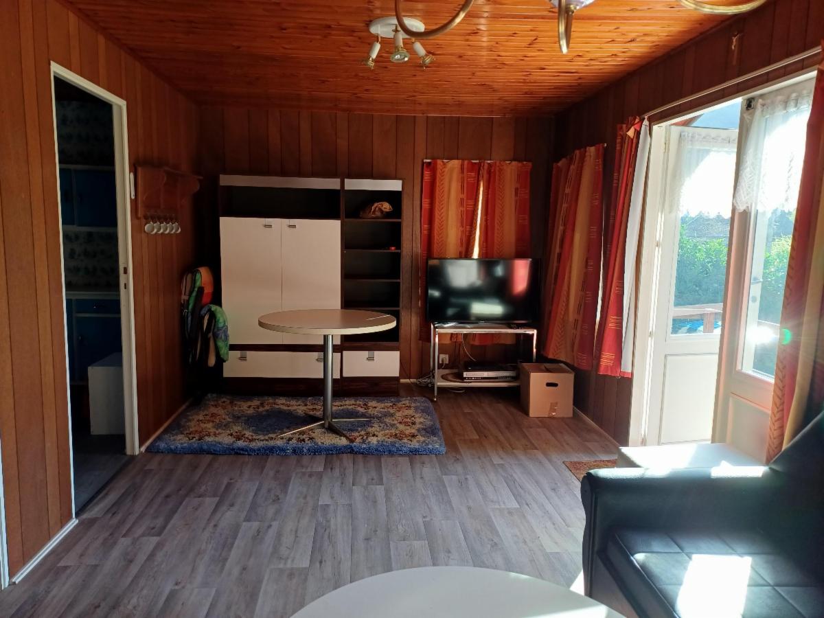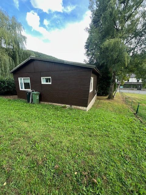 En recul par rapport à la voirie, vous pourrez découvrir ce chalet en bois d'une superficie habitable de 40m².