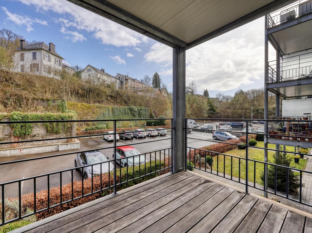 Lumineux et fonctionnel, cet appartement est situé au 1er étage. Ce bien propose une entrée et un couloir (9m²) donnant sur une chambre (11m²) et une seconde chambre (11m²) avec une terrasse qui donne sur le parking arrière du bâtiment, une salle de douche (4m²), un WC séparé, une buanderie (2m²), une cuisine équipée ouverte (8m²) donnant sur la salle à manger (12m²) comprenant une terrasse avec vue sur le château de Bouillon et un salon (13m²).