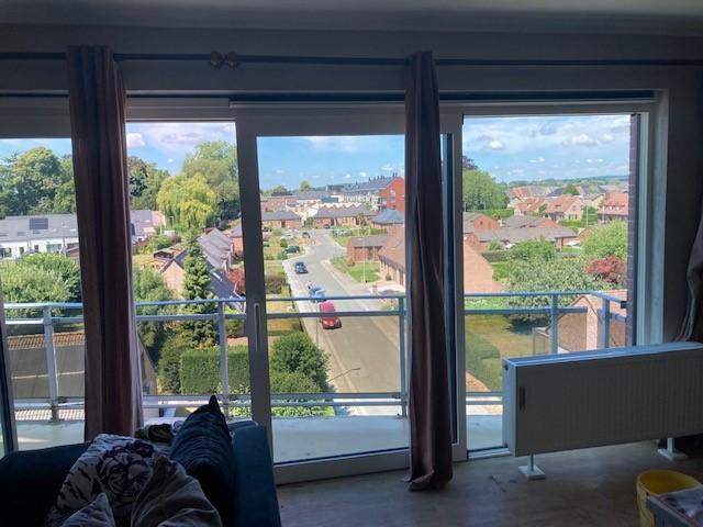 Appartement au 4e étage, vue dégagée, avec 1 cave et espace de stationnement situé à Leuze-en-Hainaut - Comprend: hall d'entrée, cuisine équipée, living donnant sur la terrasse, 2 chambres, sdb (bain, WC & lavabo) - cave - Commerces à proximité - Quartier calme