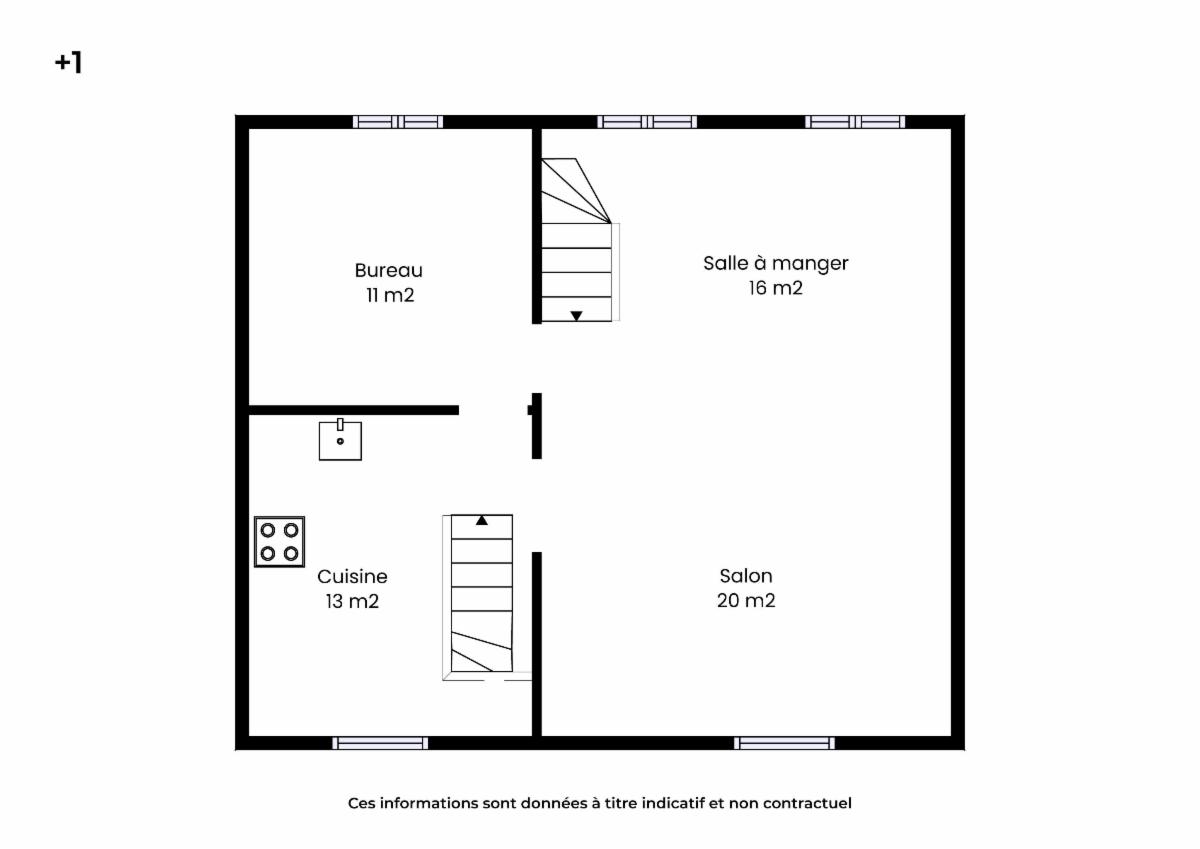 - Rez-de-chaussée : un hall avec un escalier.