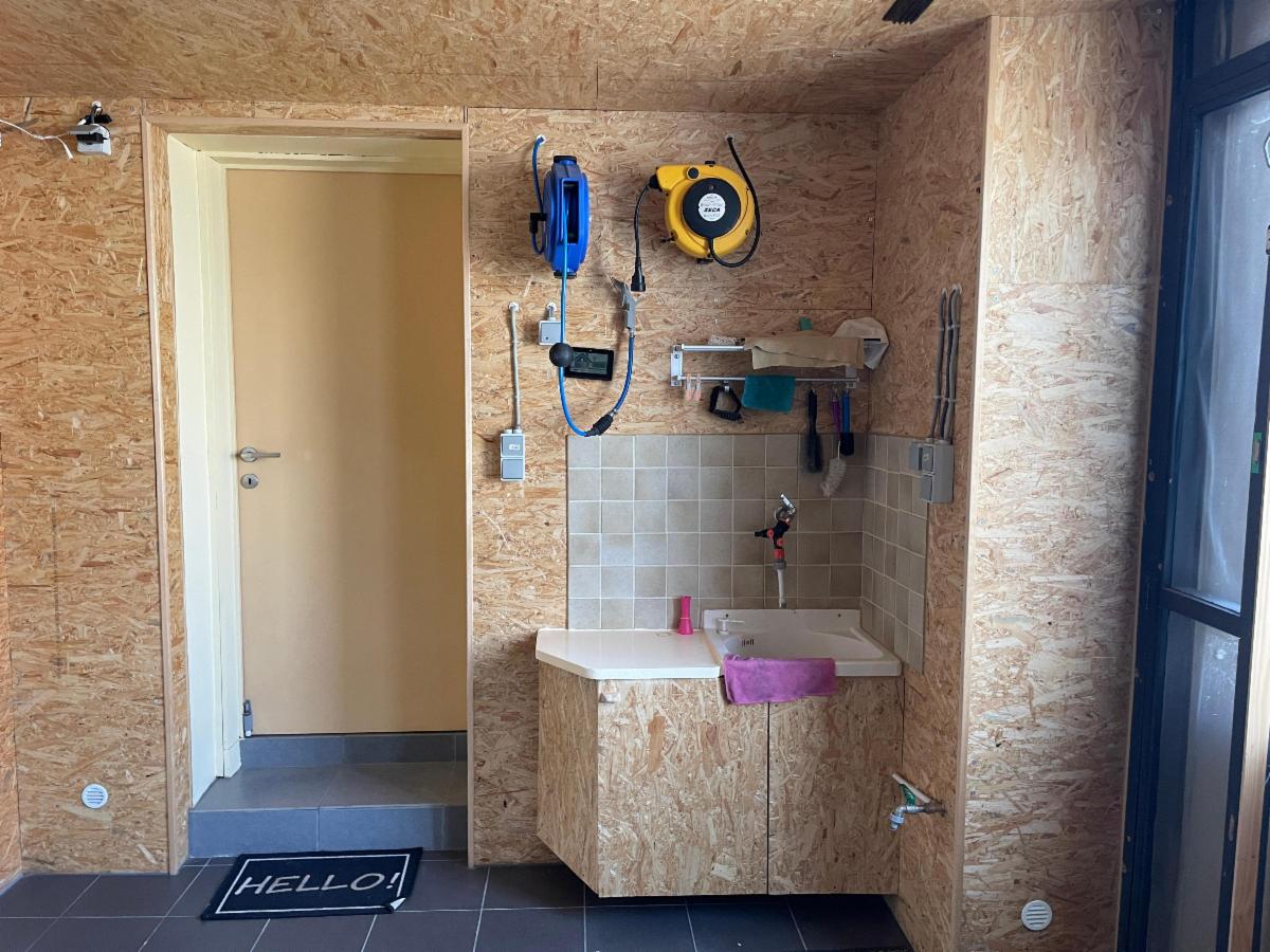 APPARTEMENT : il se compose en rez-de-chaussée d’un hall d’entrée avec WC séparé, une buanderie, une pièce de stockage, un garage (porte motorisée), une pièce intermédiaire avec et un atelier.