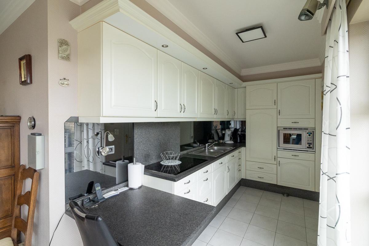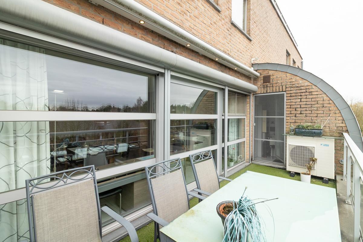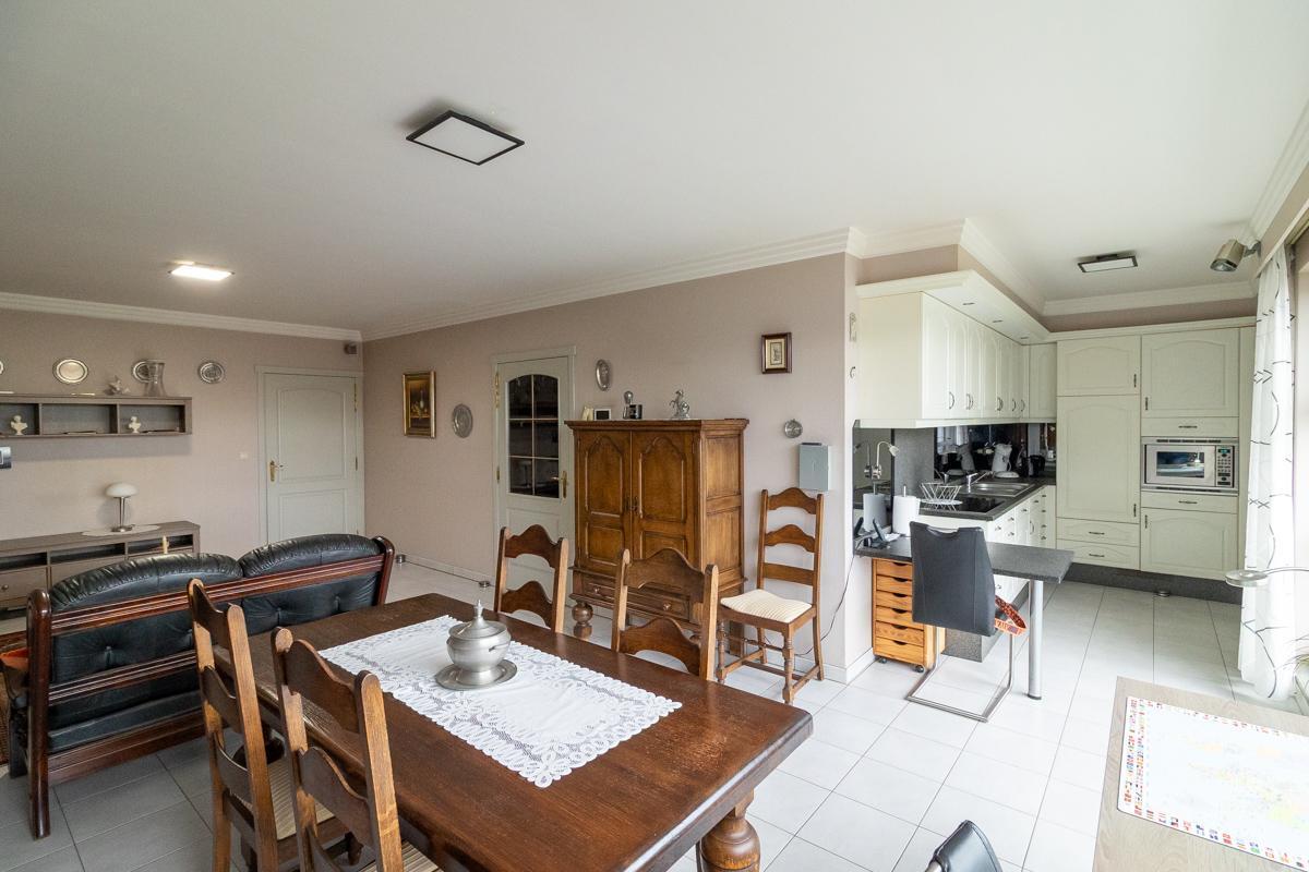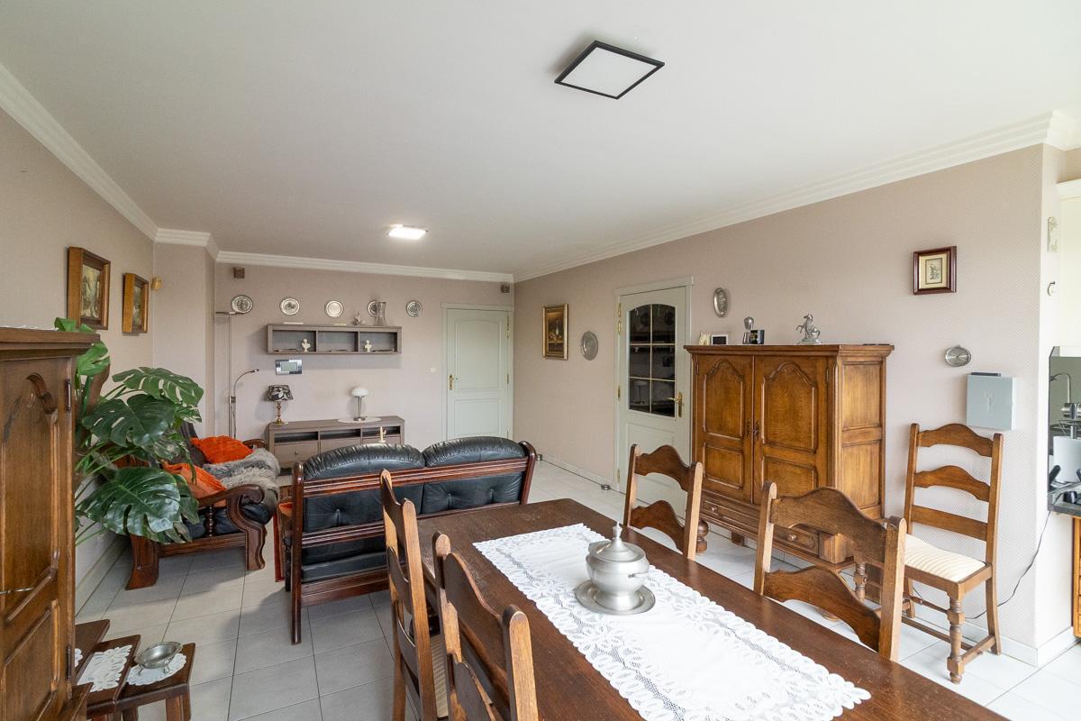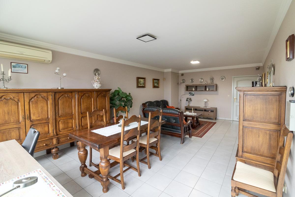 Het appartement, gebouwd in 2004, heeft een bewoonbare oppervlakte van 106 m² en biedt een aangename en praktische indeling. De leefruimte en keuken geven rechtstreeks toegang tot het zonnige terras aan de voorzijde, dat uitgerust is met een elektrische zonneluifel en elektrische screens – ideaal om het hele jaar door te genieten. De leefruimte en grootste slaapkamer zijn uitgerust met airco.